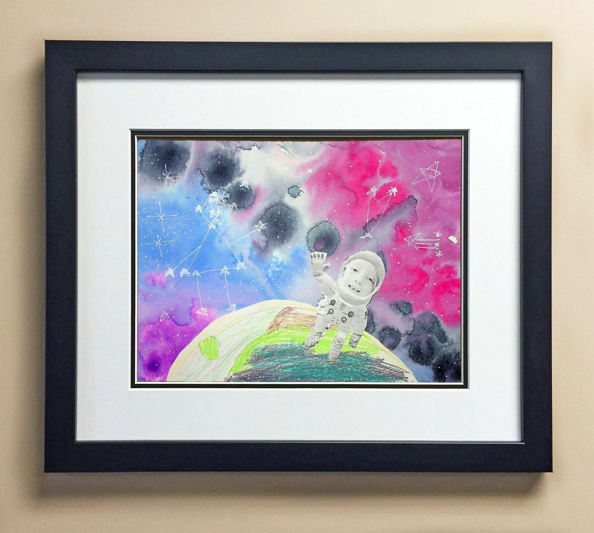 Included with the purchase is the Students Artwork, Frame, double matboard, shatter proof plexiglass, and a ready to hang backerboard with turnbuttons