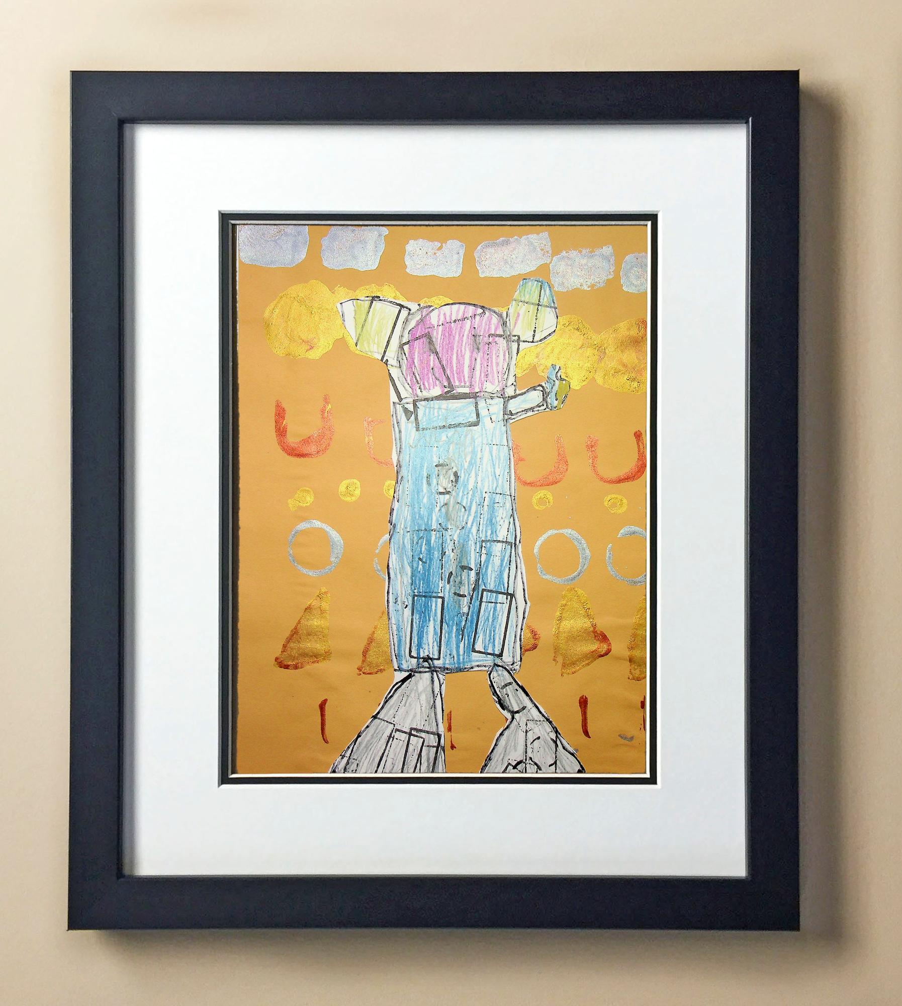 Included with the purchase is the Students Artwork, Frame, double matboard, shatter proof plexiglass, and a ready to hang backerboard with turnbuttons