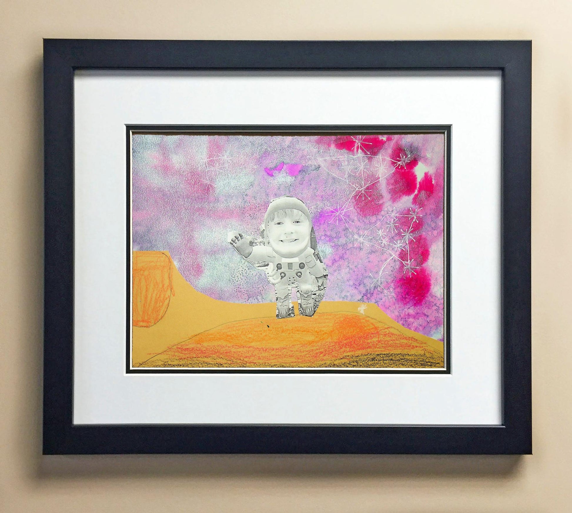 Included with the purchase is the Students Artwork, Frame, double matboard, shatter proof plexiglass, and a ready to hang backerboard with turnbuttons