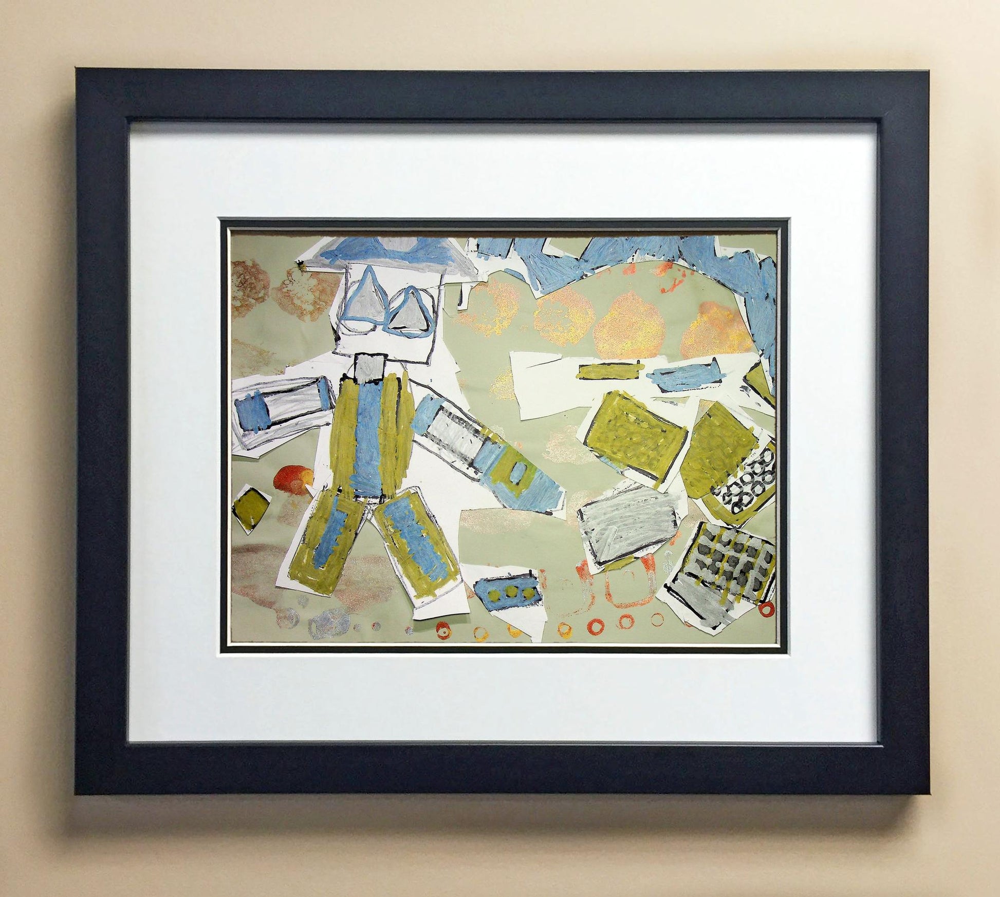 Included with the purchase is the Students Artwork, Frame, double matboard, shatter proof plexiglass, and a ready to hang backerboard with turnbuttons
