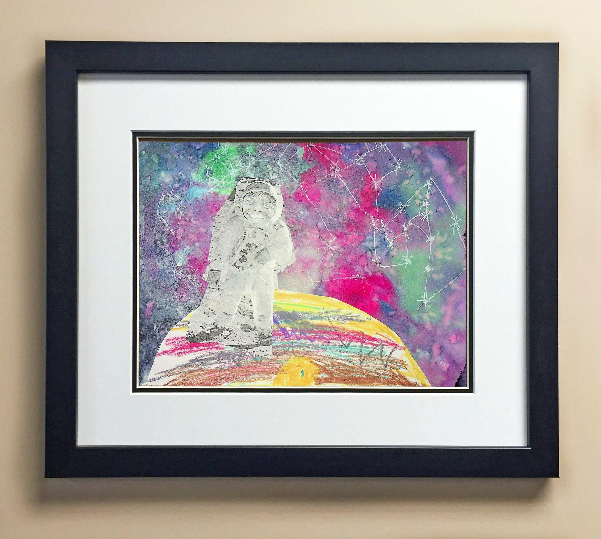 Included with the purchase is the Students Artwork, Frame, double matboard, shatter proof plexiglass, and a ready to hang backerboard with turnbuttons