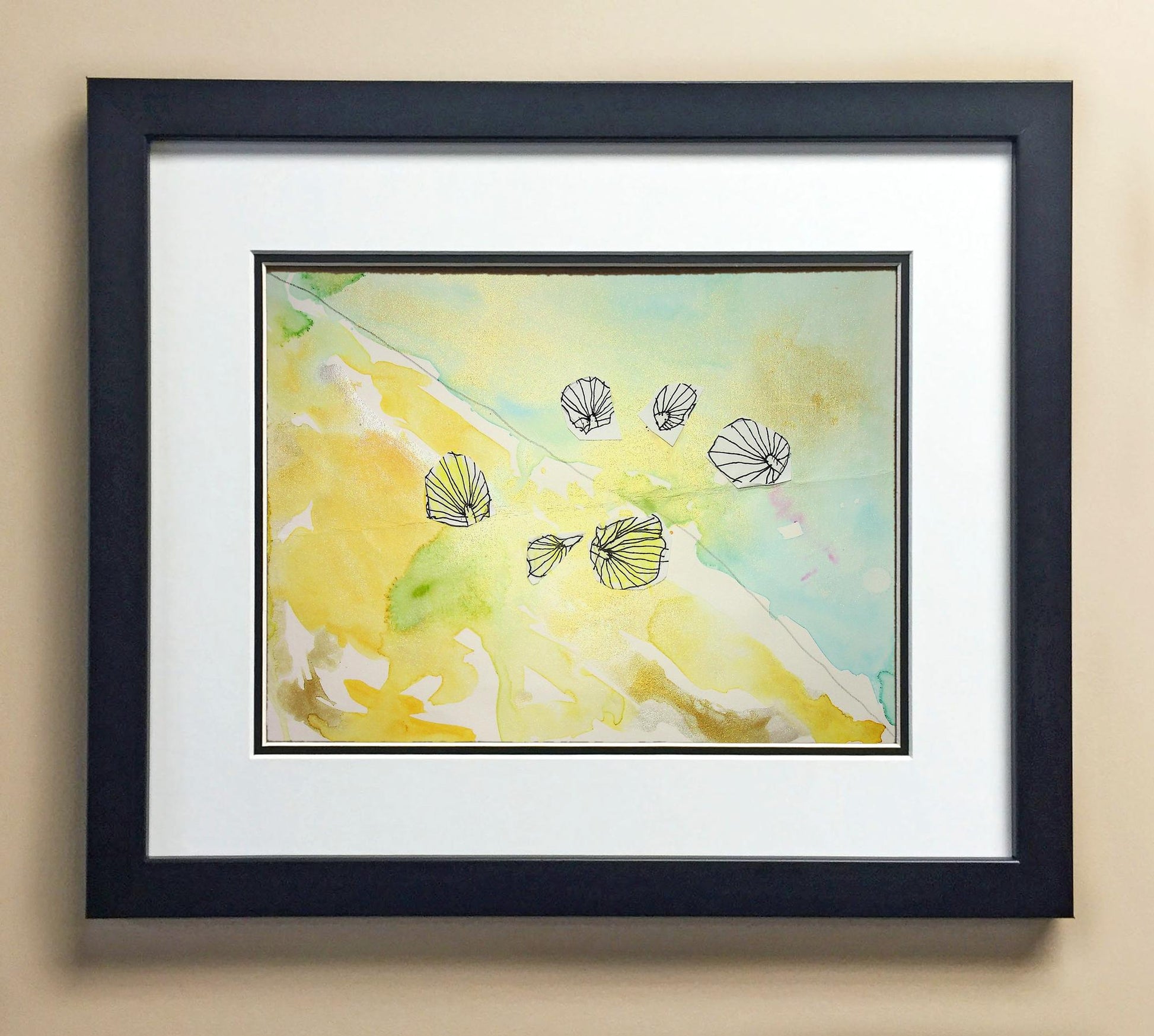 Included with the purchase is the Students Artwork, Frame, double matboard, shatter proof plexiglass, and a ready to hang backerboard with turnbuttons