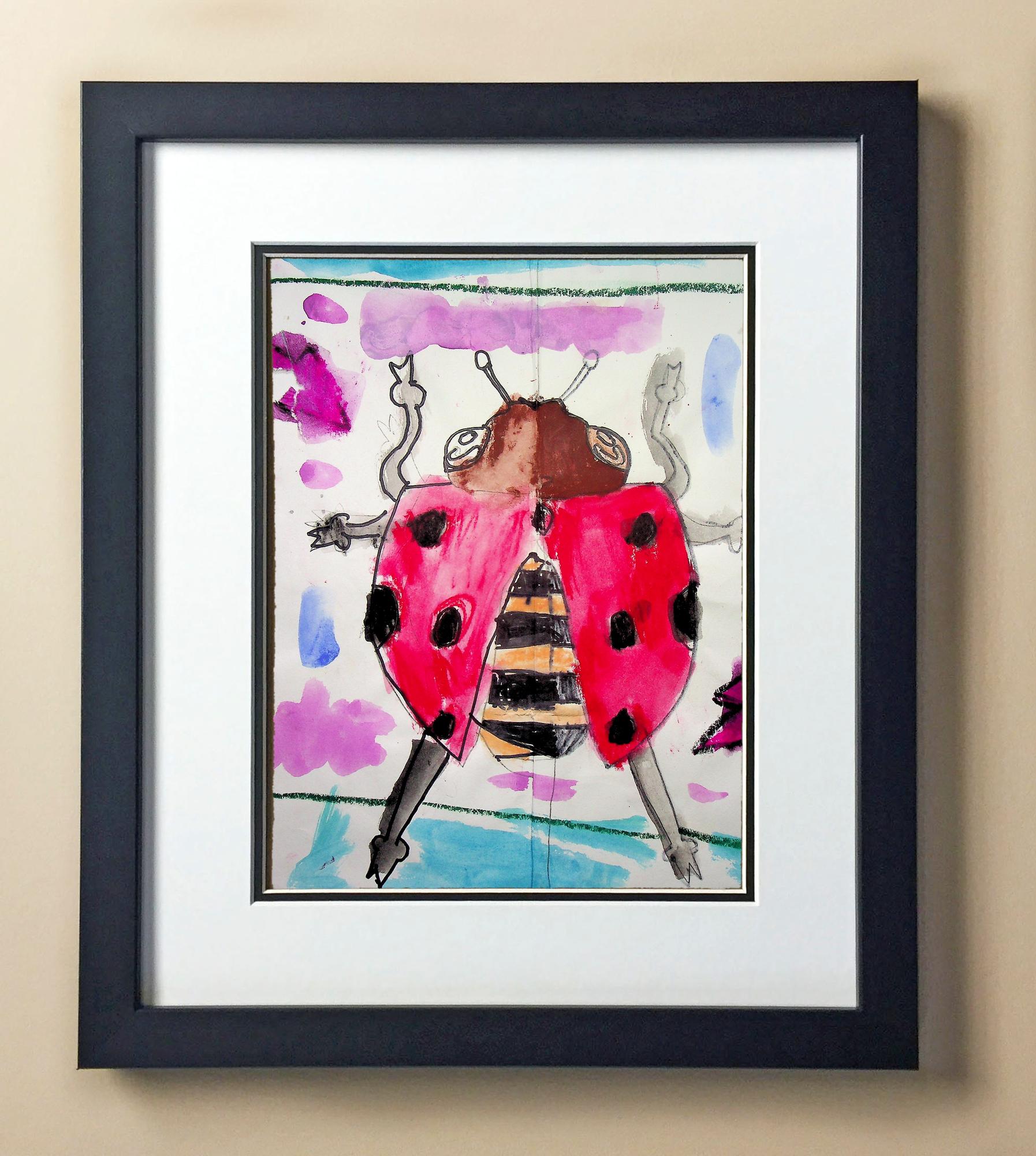 Included with the purchase is the Students Artwork, Frame, double matboard, shatter proof plexiglass, and a ready to hang backerboard with turnbuttons