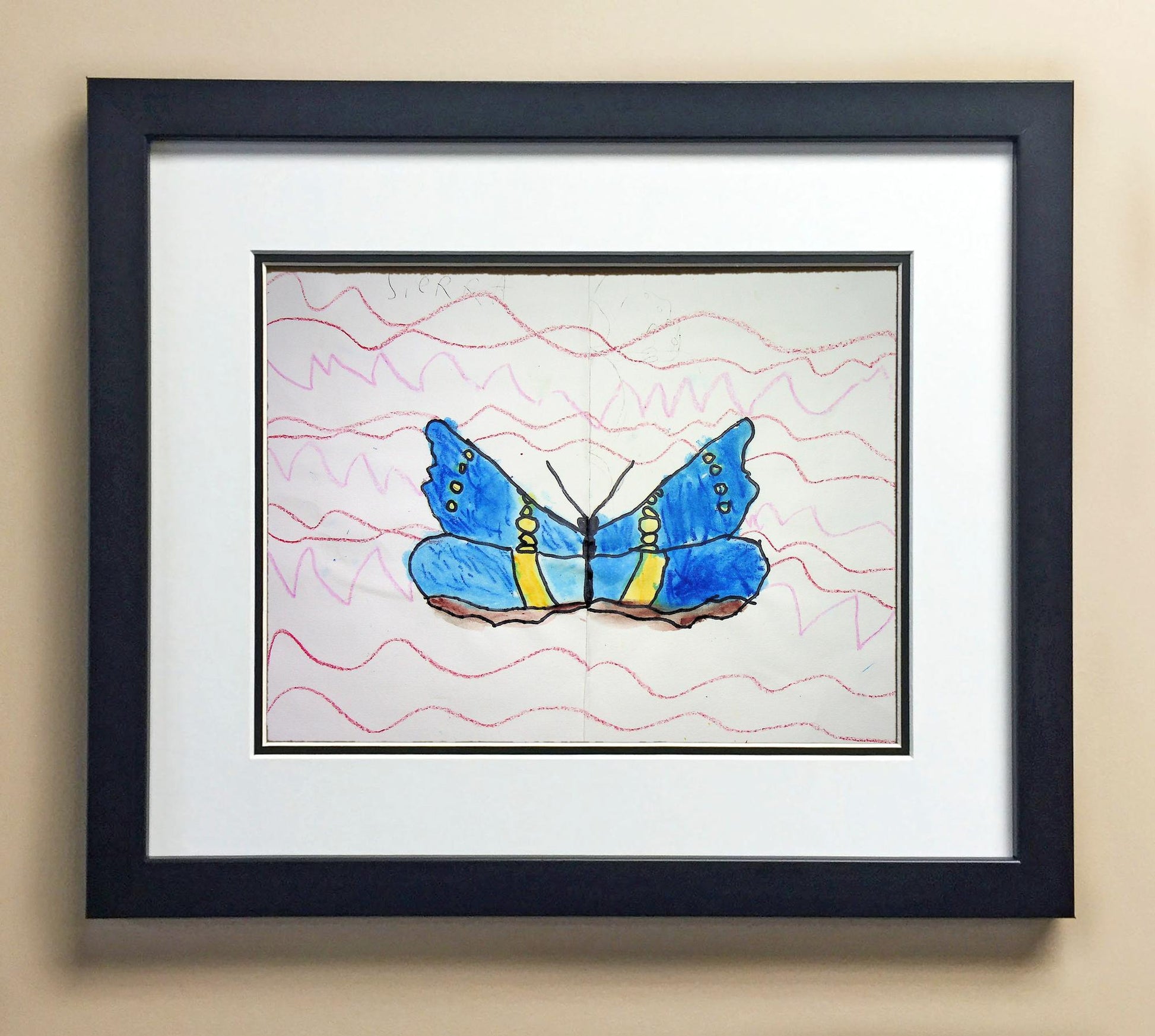 Included with the purchase is the Students Artwork, Frame, double matboard, shatter proof plexiglass, and a ready to hang backerboard with turnbuttons