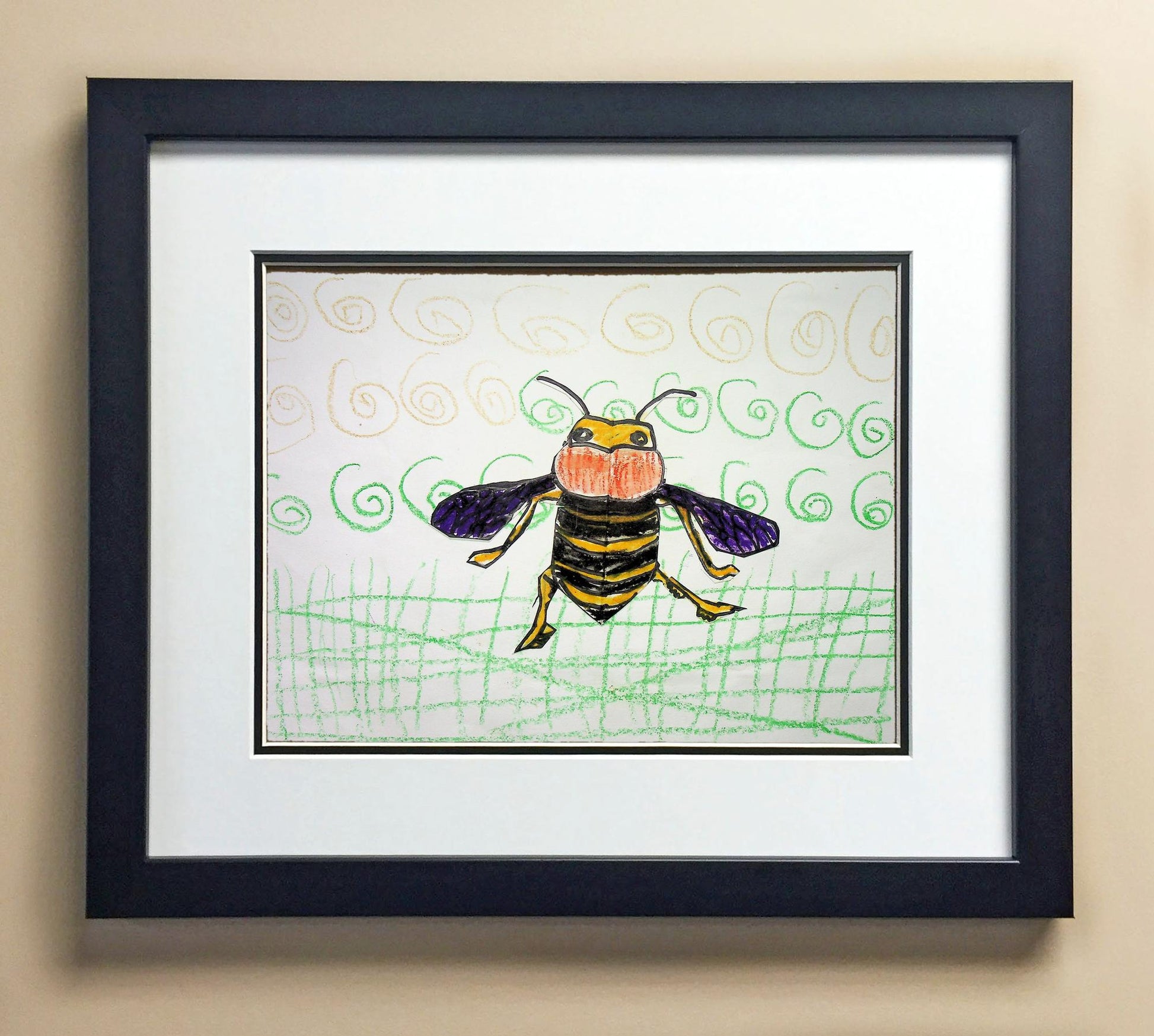 Included with the purchase is the Students Artwork, Frame, double matboard, shatter proof plexiglass, and a ready to hang backerboard with turnbuttons