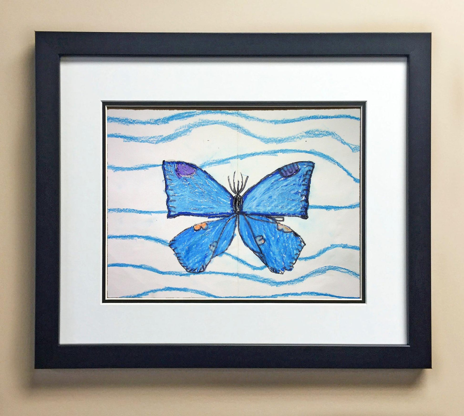 Included with the purchase is the Students Artwork, Frame, double matboard, shatter proof plexiglass, and a ready to hang backerboard with turnbuttons