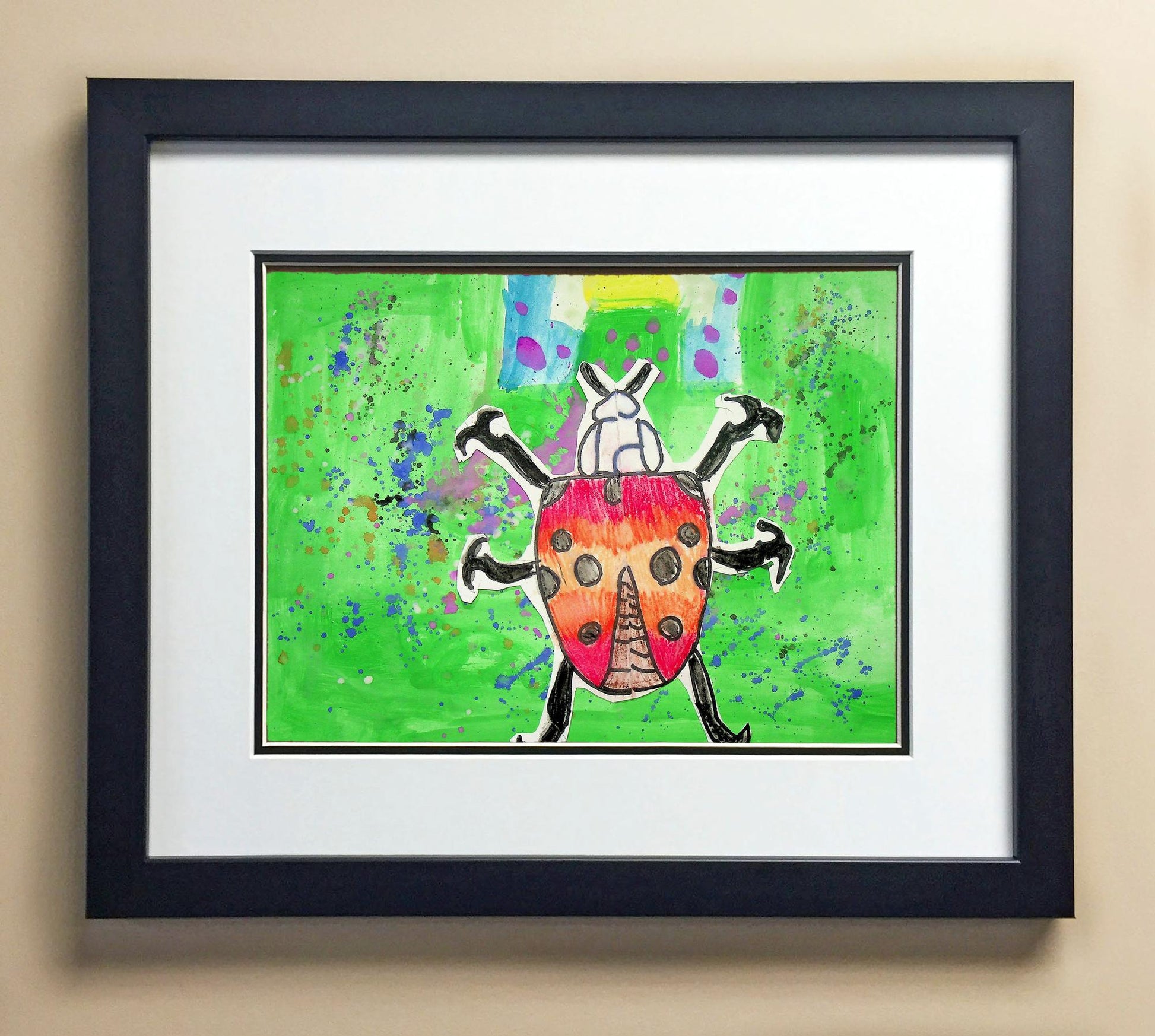 Included with the purchase is the Students Artwork, Frame, double matboard, shatter proof plexiglass, and a ready to hang backerboard with turnbuttons