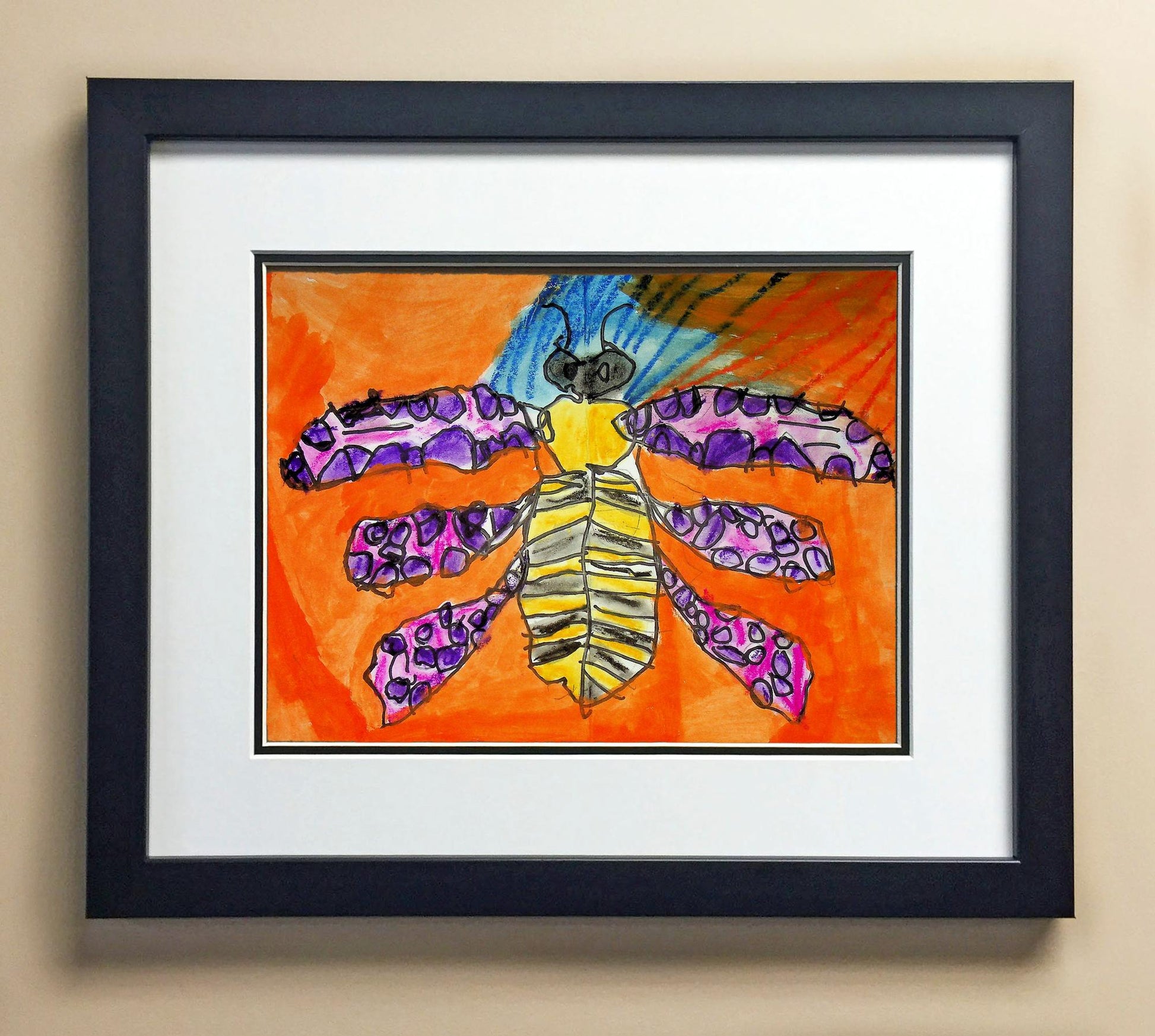 Included with the purchase is the Students Artwork, Frame, double matboard, shatter proof plexiglass, and a ready to hang backerboard with turnbuttons
