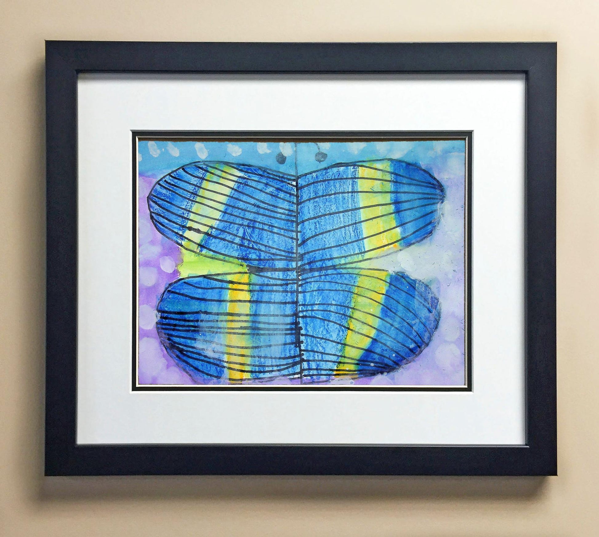 Included with the purchase is the Students Artwork, Frame, double matboard, shatter proof plexiglass, and a ready to hang backerboard with turnbuttons