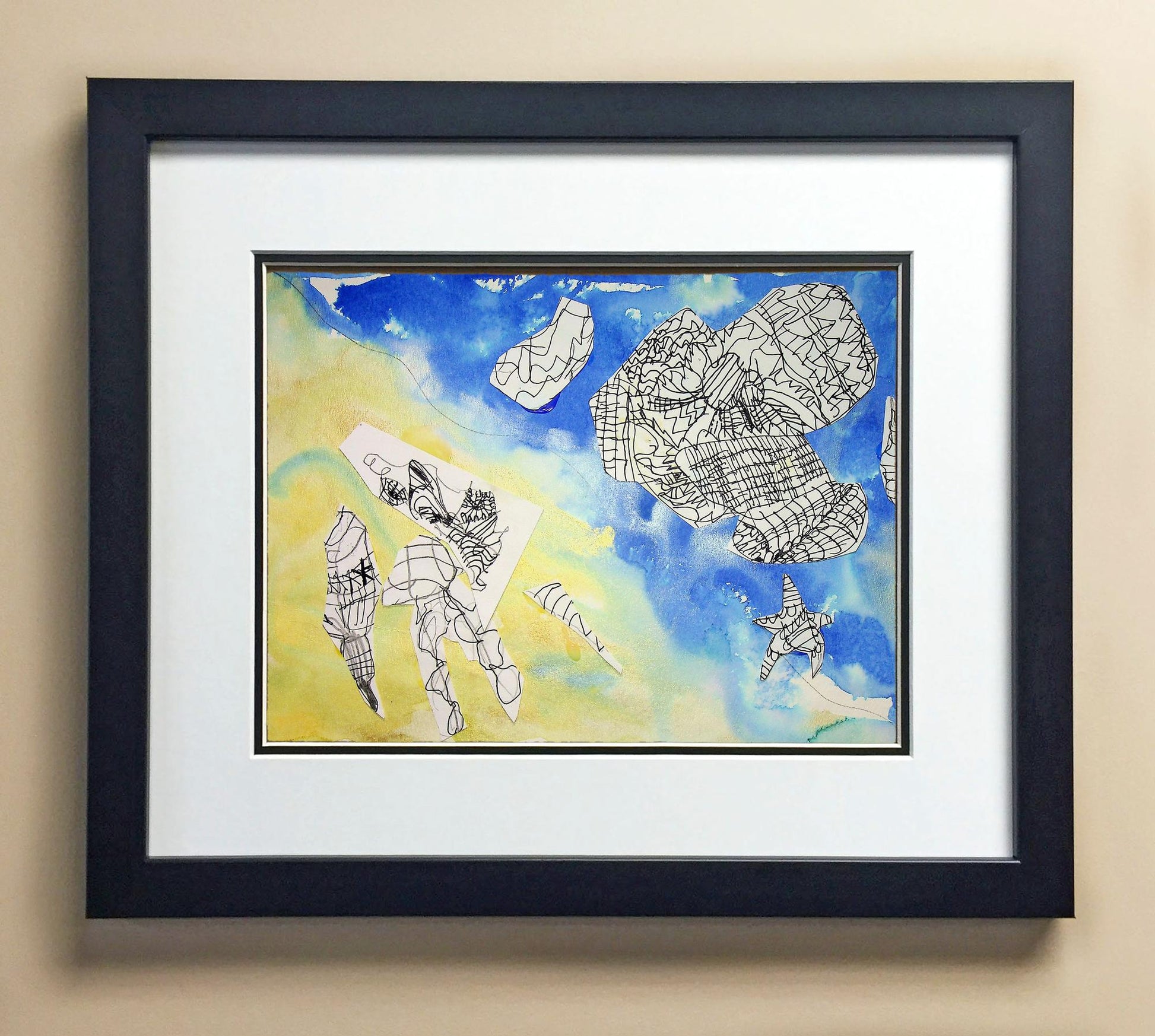 Included with the purchase is the Students Artwork, Frame, double matboard, shatter proof plexiglass, and a ready to hang backerboard with turnbuttons