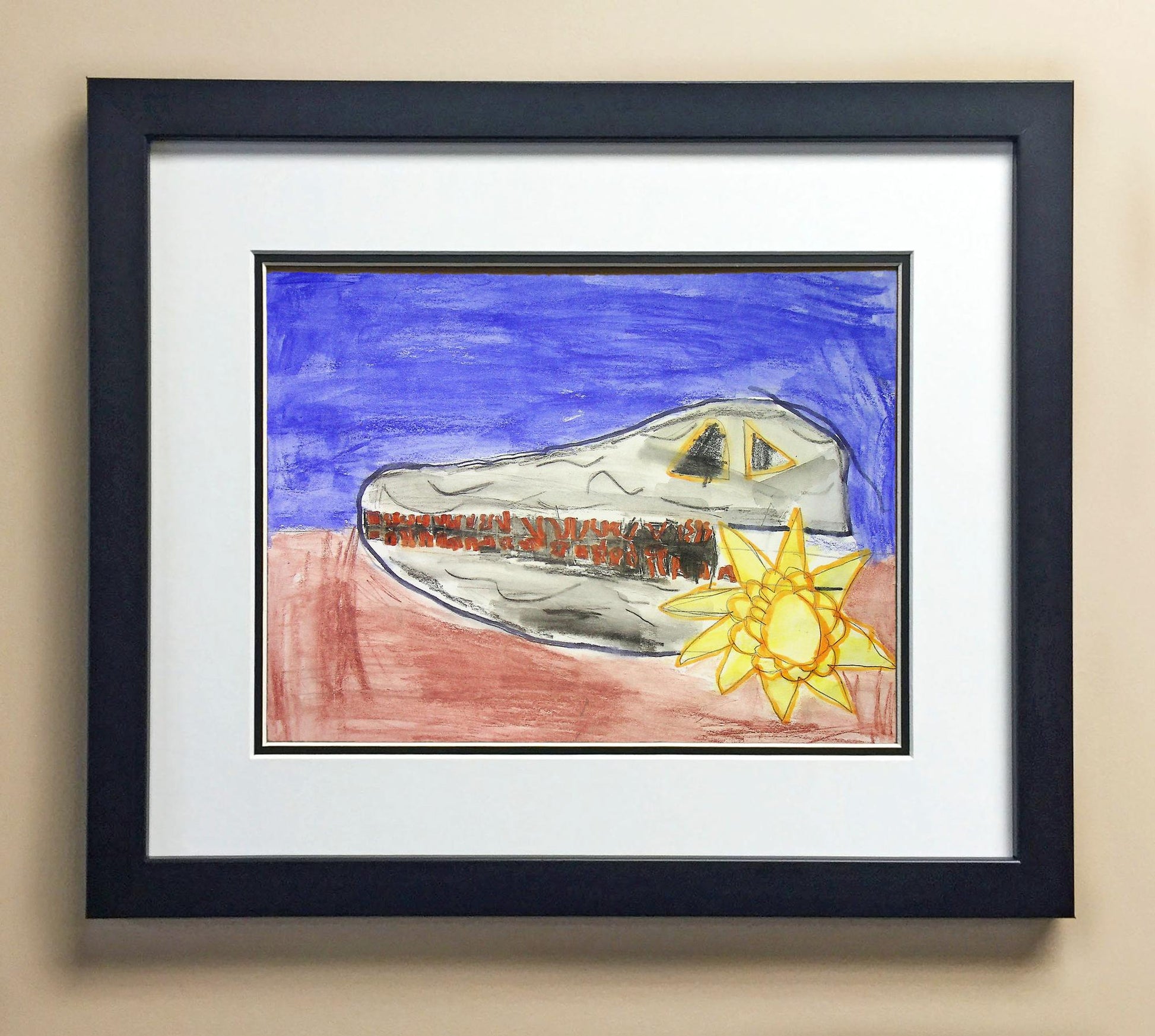 Included with the purchase is the Students Artwork, Frame, double matboard, shatter proof plexiglass, and a ready to hang backerboard with turnbuttons