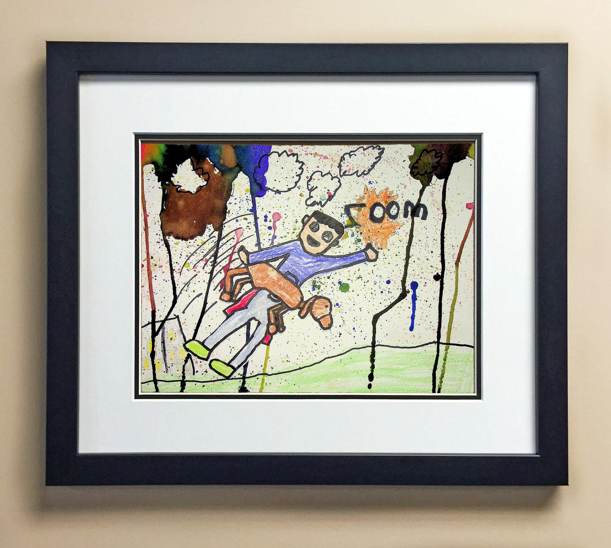 Included with the purchase is the Students Artwork, Frame, double matboard, shatter proof plexiglass, and a ready to hang backerboard with turnbuttons