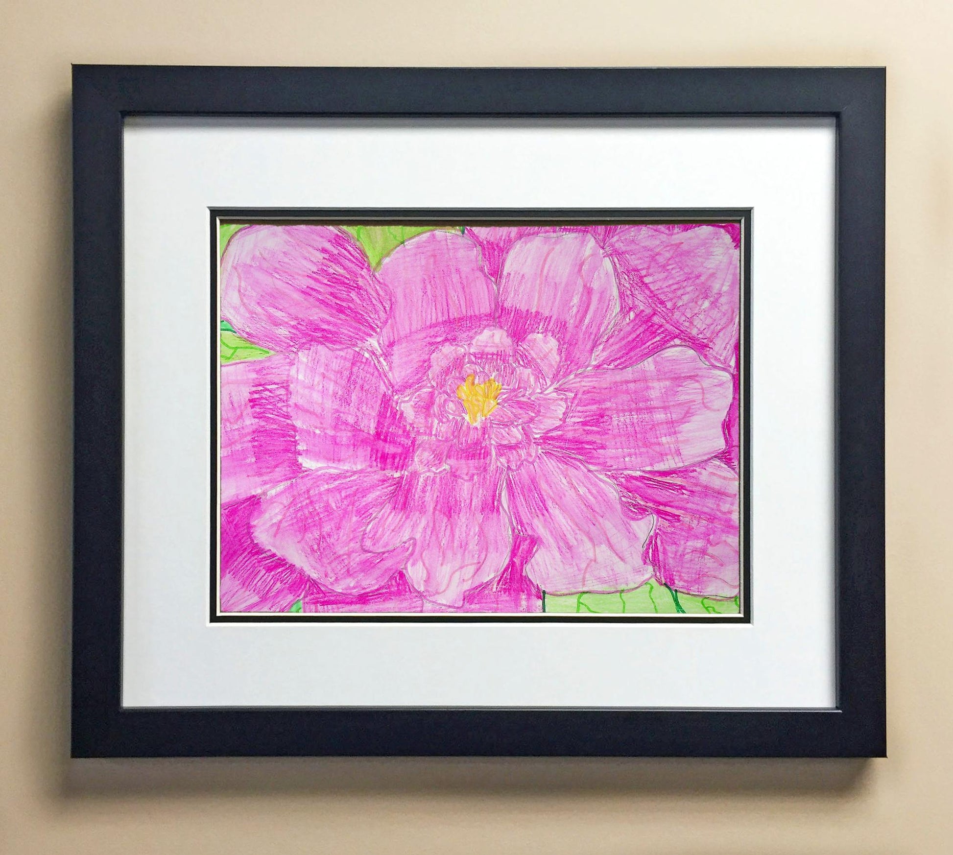 Included with the purchase is the Students Artwork, Frame, double matboard, shatter proof plexiglass, and a ready to hang backerboard with turnbuttons