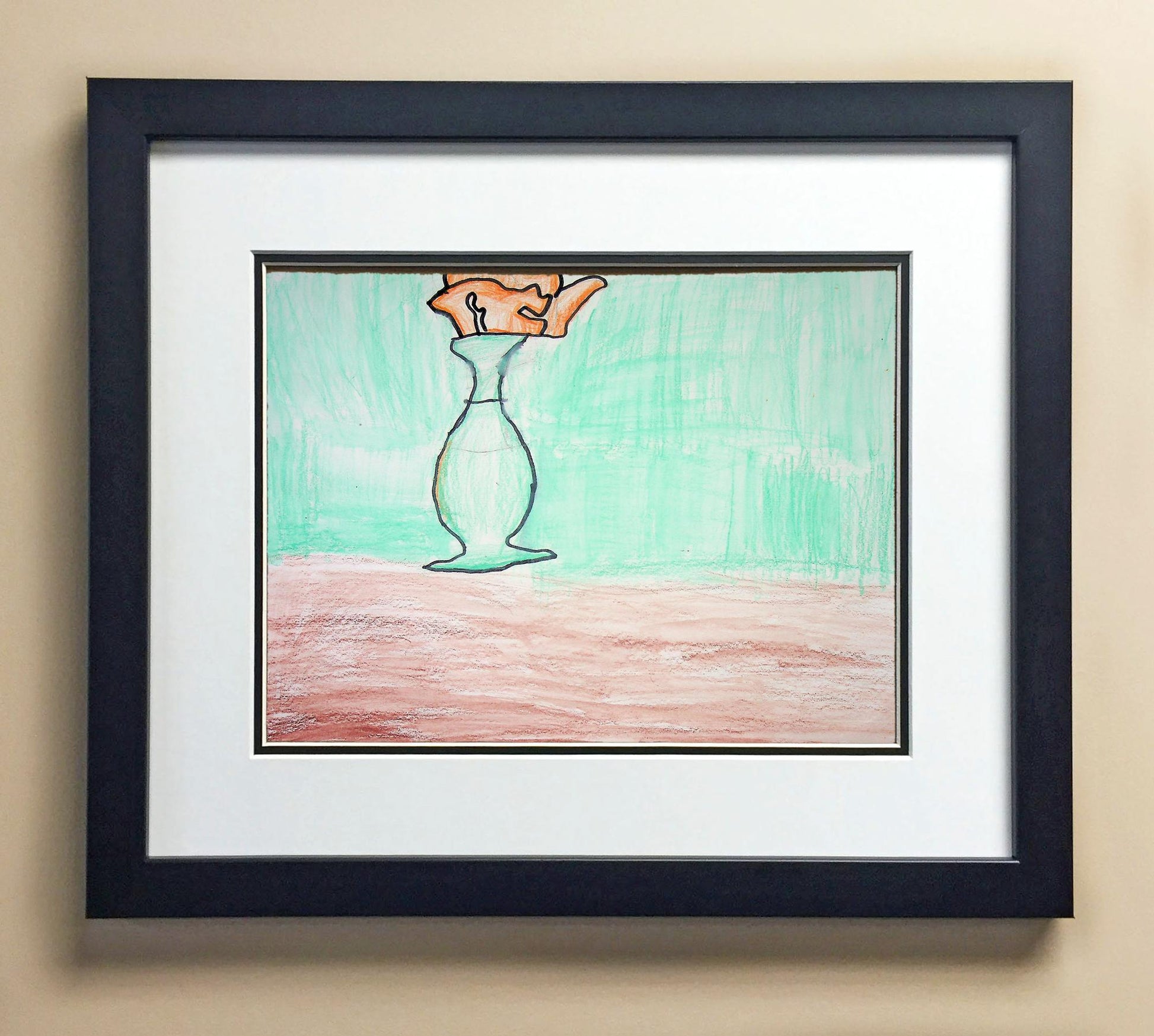 Included with the purchase is the Students Artwork, Frame, double matboard, shatter proof plexiglass, and a ready to hang backerboard with turnbuttons