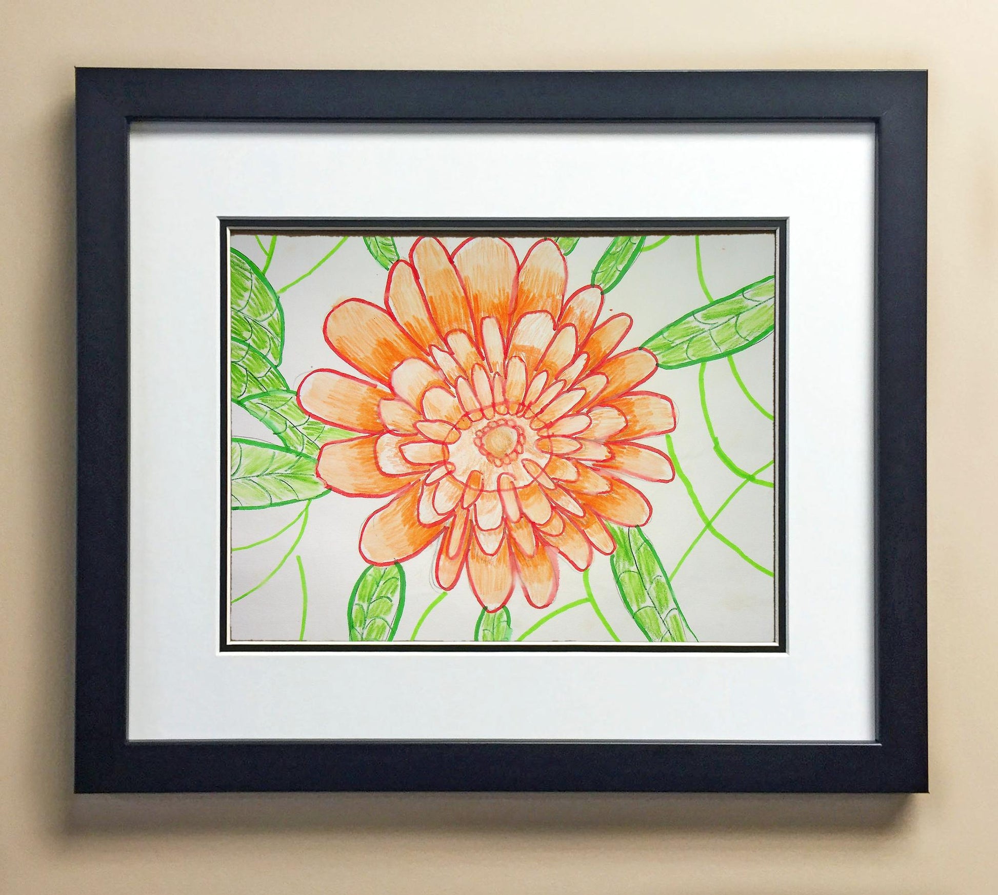 Included with the purchase is the Students Artwork, Frame, double matboard, shatter proof plexiglass, and a ready to hang backerboard with turnbuttons