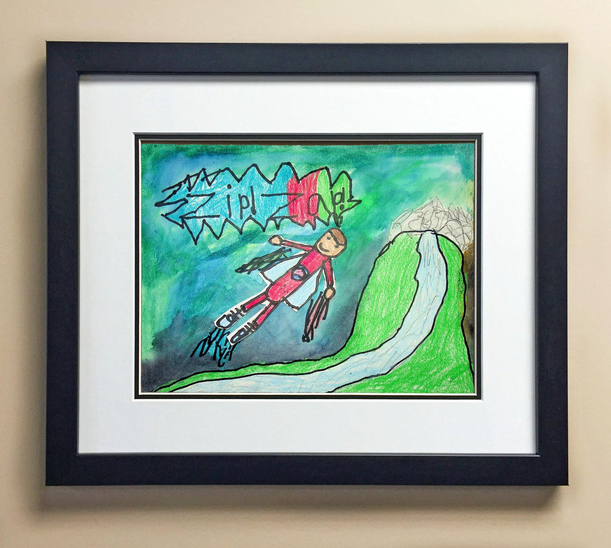 Included with the purchase is the Students Artwork, Frame, double matboard, shatter proof plexiglass, and a ready to hang backerboard with turnbuttons