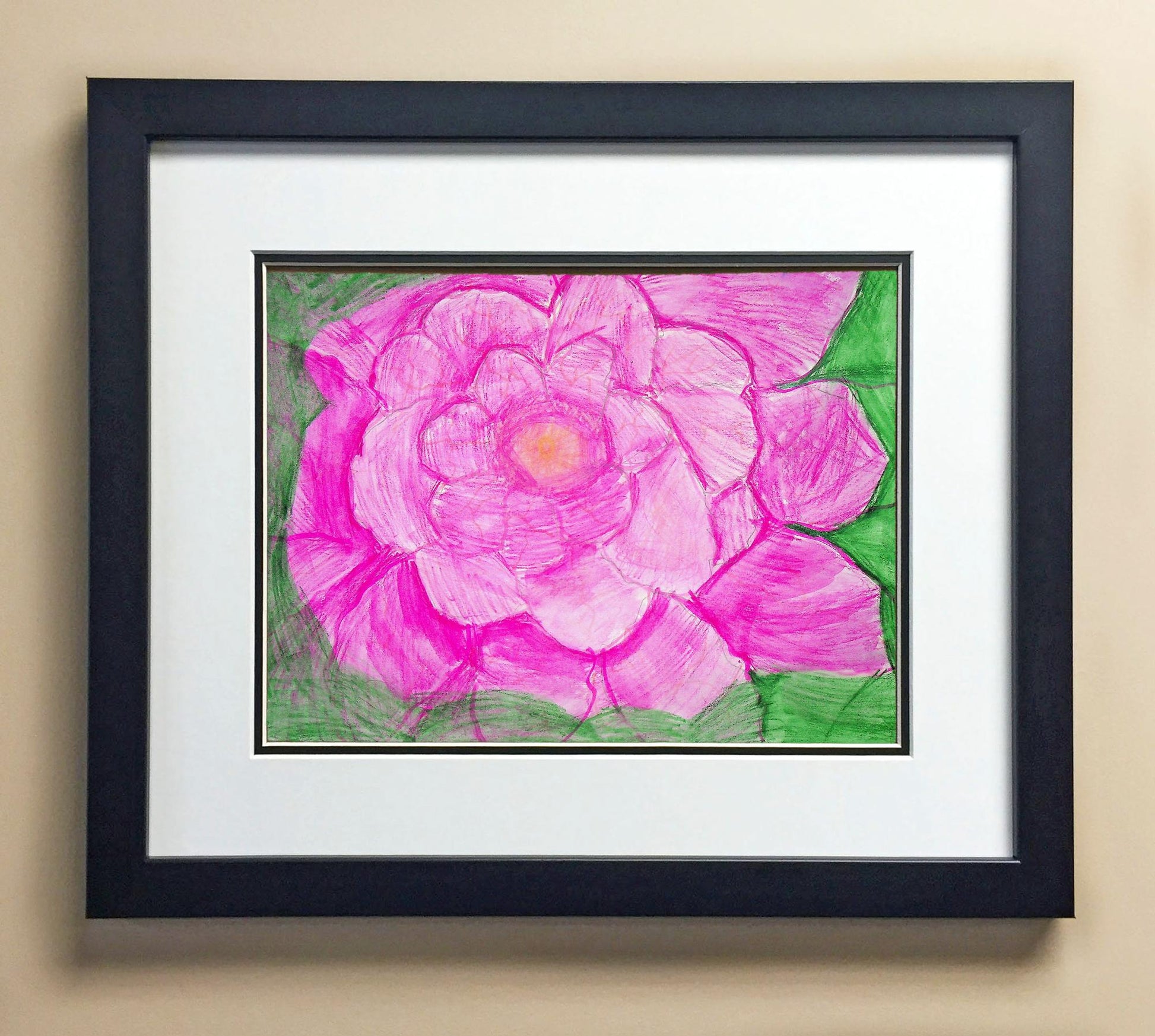 Included with the purchase is the Students Artwork, Frame, double matboard, shatter proof plexiglass, and a ready to hang backerboard with turnbuttons