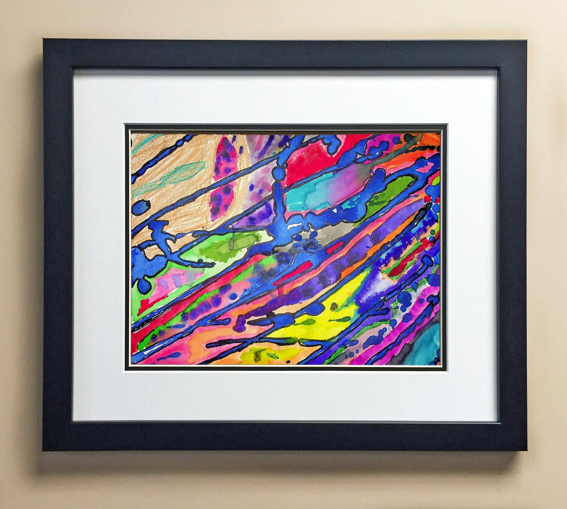 Included with the purchase is the Students Artwork, Frame, double matboard, shatter proof plexiglass, and a ready to hang backerboard with turnbuttons
