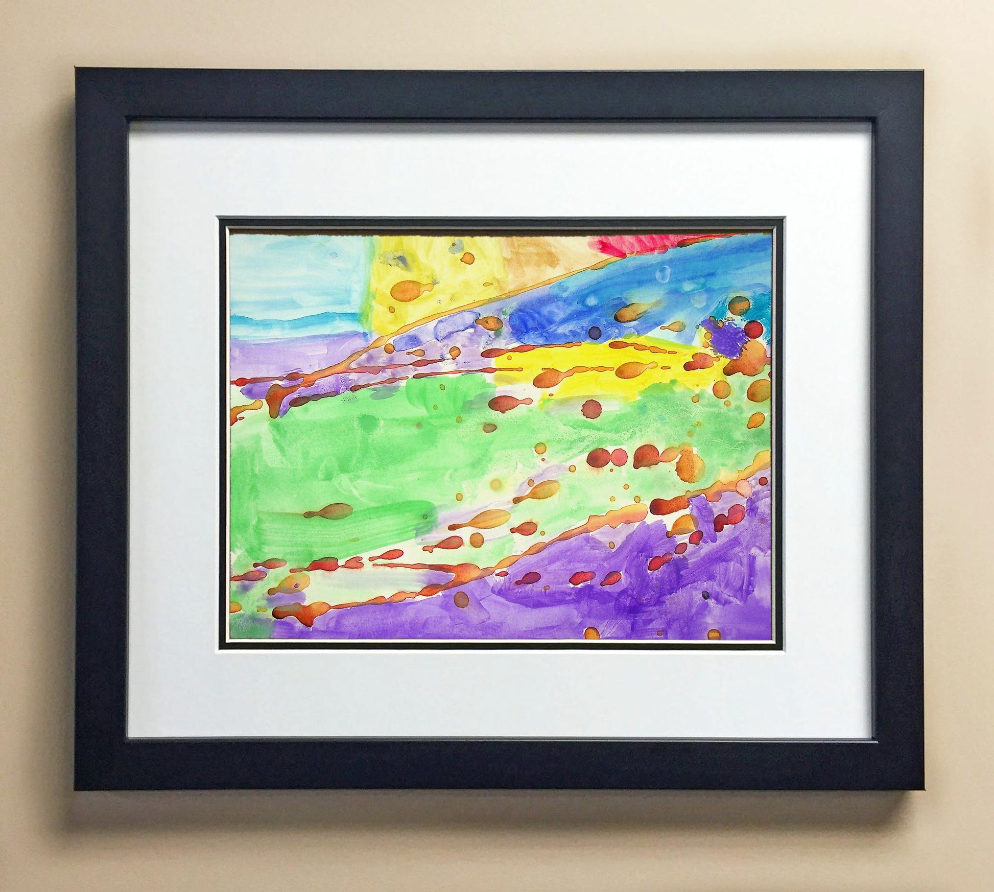 Included with the purchase is the Students Artwork, Frame, double matboard, shatter proof plexiglass, and a ready to hang backerboard with turnbuttons