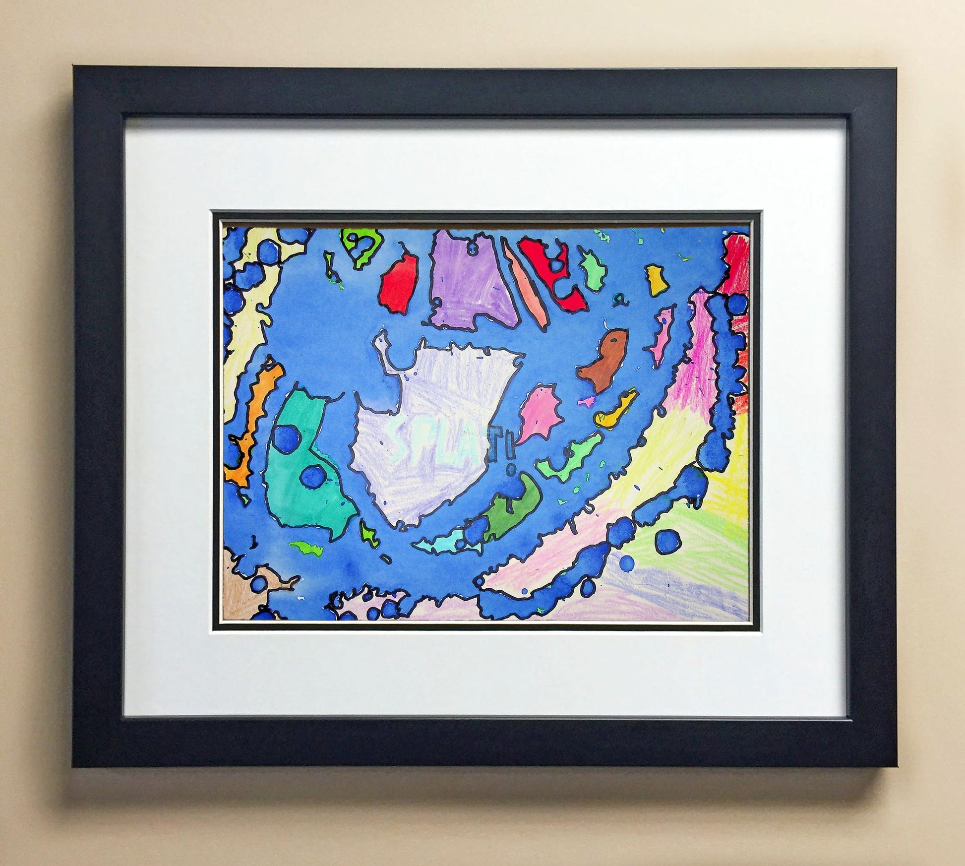 Included with the purchase is the Students Artwork, Frame, double matboard, shatter proof plexiglass, and a ready to hang backerboard with turnbuttons