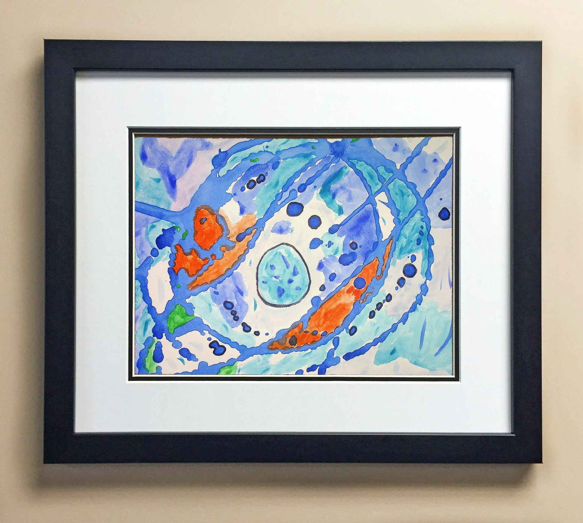 Included with the purchase is the Students Artwork, Frame, double matboard, shatter proof plexiglass, and a ready to hang backerboard with turnbuttons