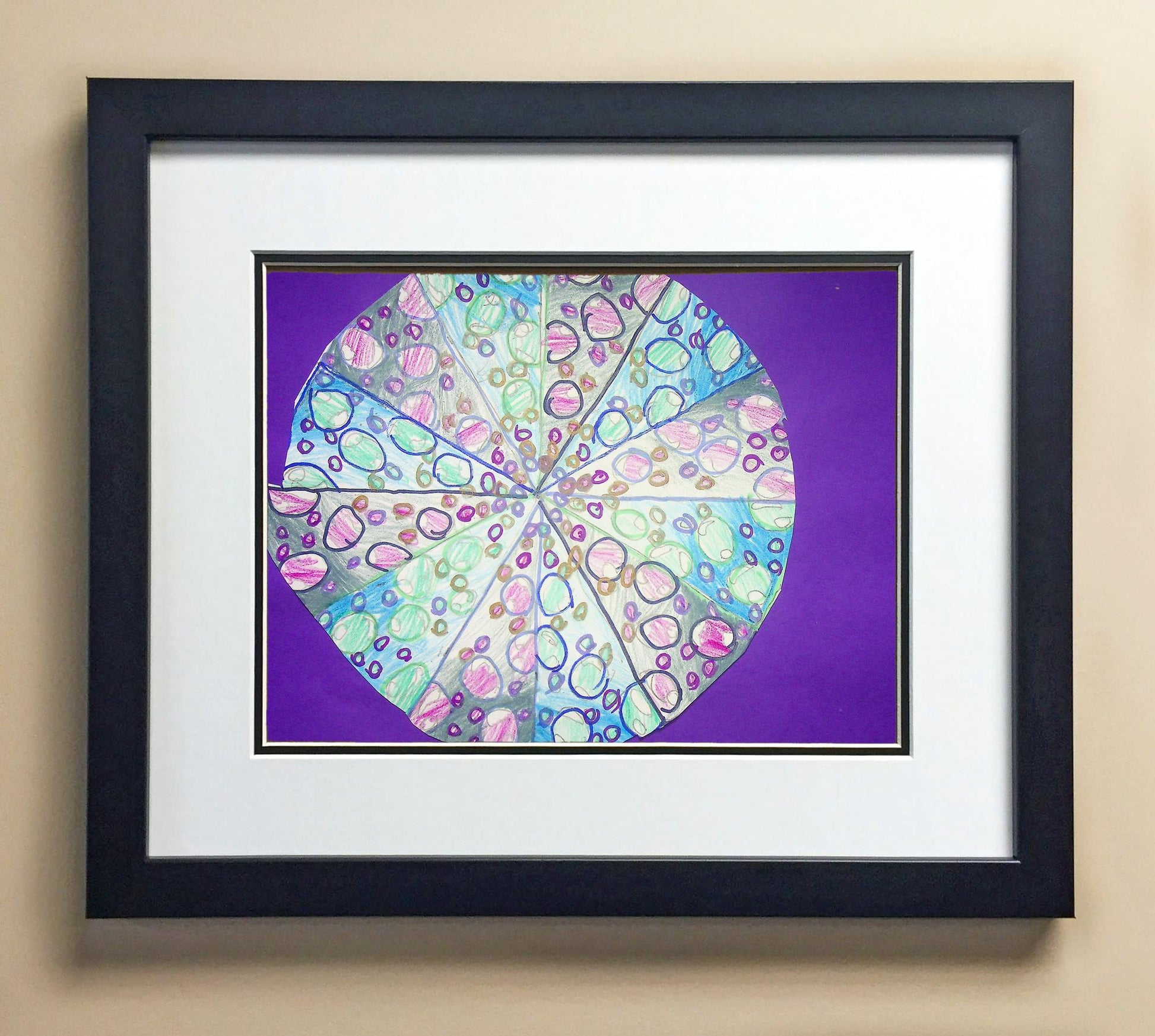 Included with the purchase is the Students Artwork, Frame, double matboard, shatter proof plexiglass, and a ready to hang backerboard with turnbuttons