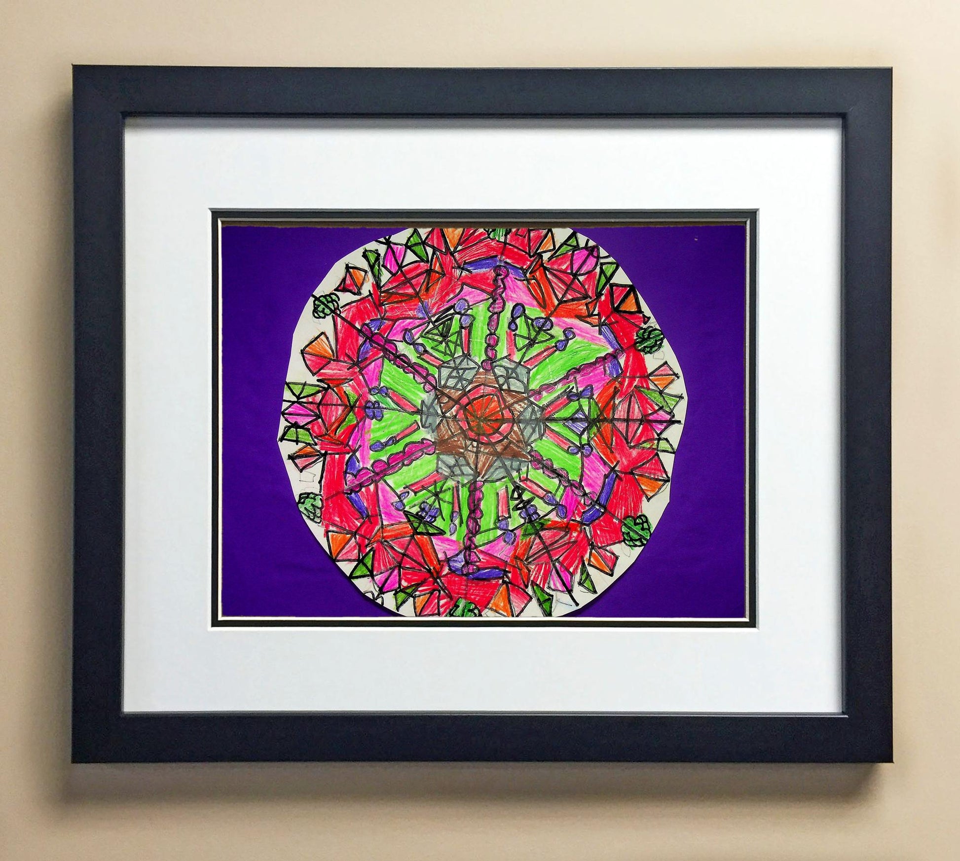 Included with the purchase is the Students Artwork, Frame, double matboard, shatter proof plexiglass, and a ready to hang backerboard with turnbuttons