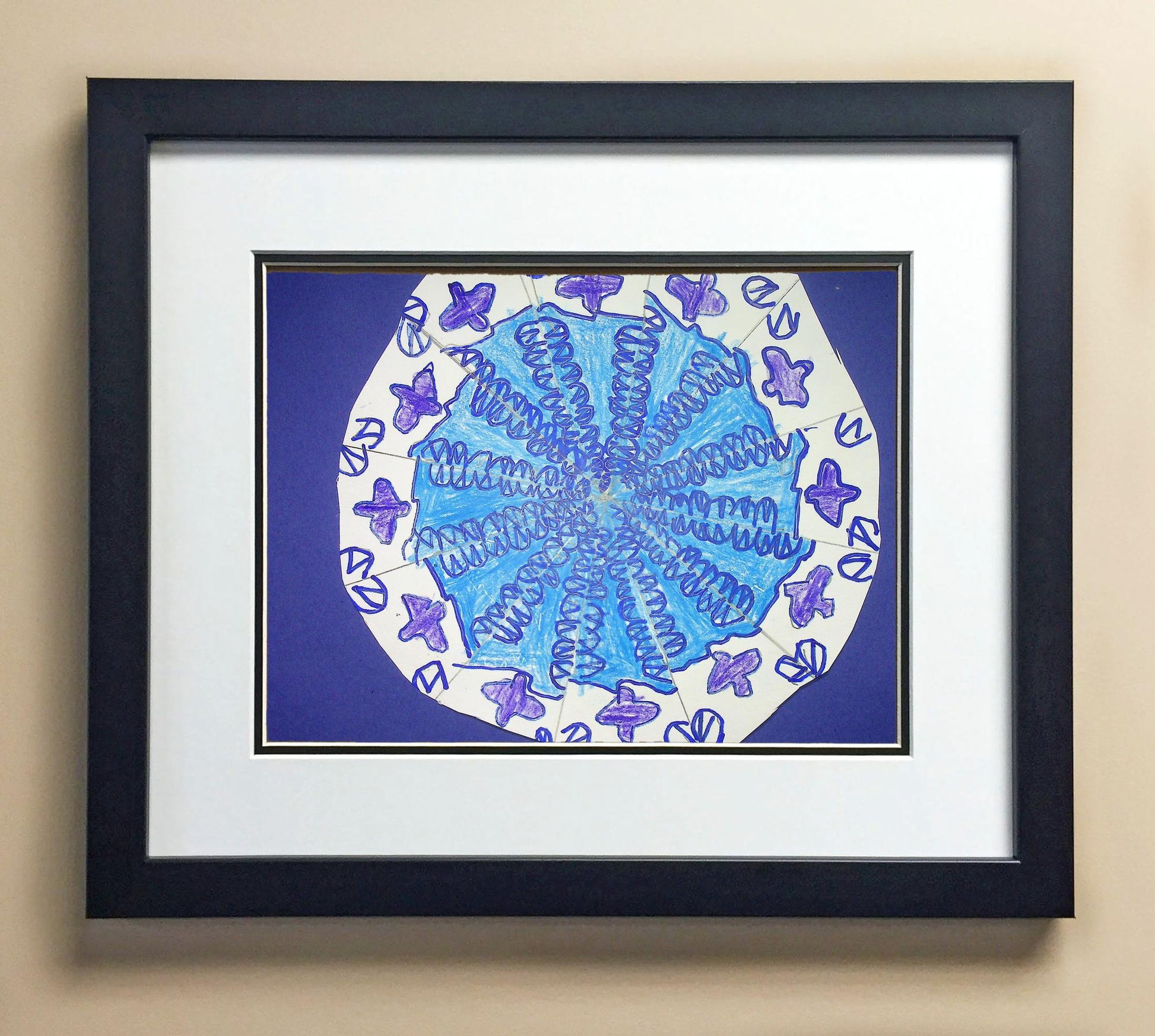 Included with the purchase is the Students Artwork, Frame, double matboard, shatter proof plexiglass, and a ready to hang backerboard with turnbuttons