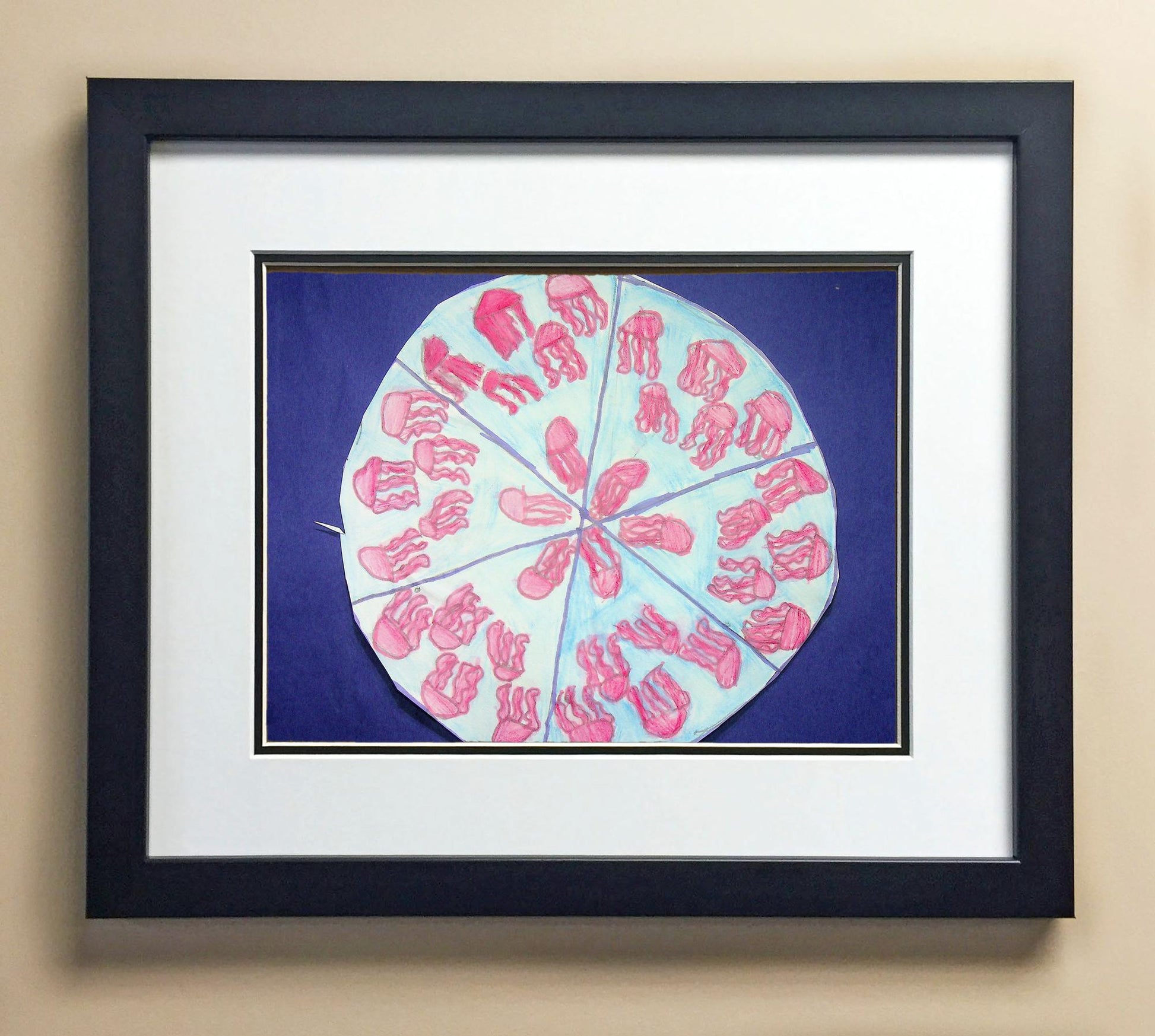 Included with the purchase is the Students Artwork, Frame, double matboard, shatter proof plexiglass, and a ready to hang backerboard with turnbuttons