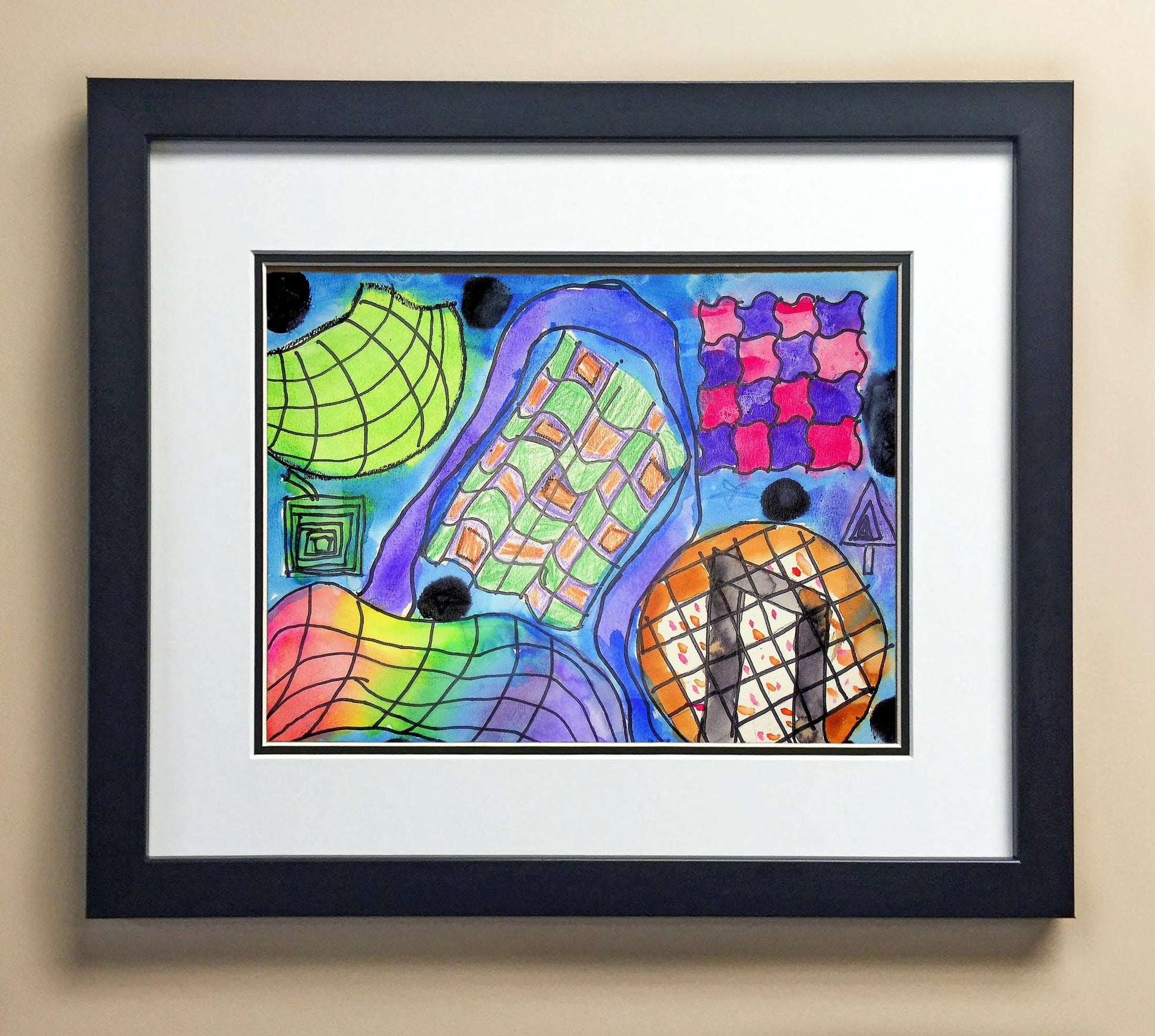 Included with the purchase is the Students Artwork, Frame, double matboard, shatter proof plexiglass, and a ready to hang backerboard with turnbuttons