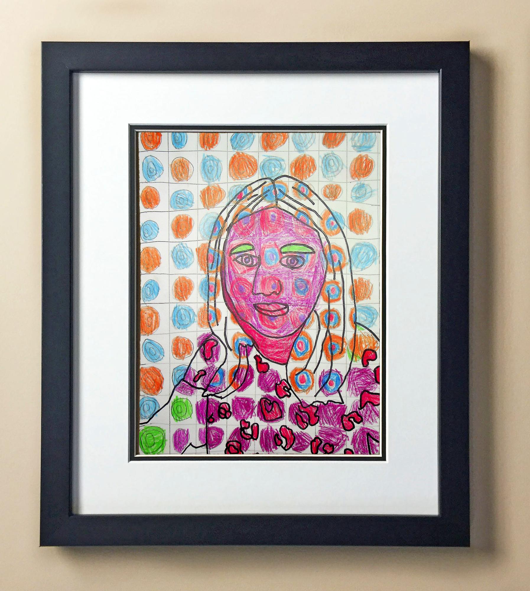 Included with the purchase is the Students Artwork, Frame, double matboard, shatter proof plexiglass, and a ready to hang backerboard with turnbuttons
