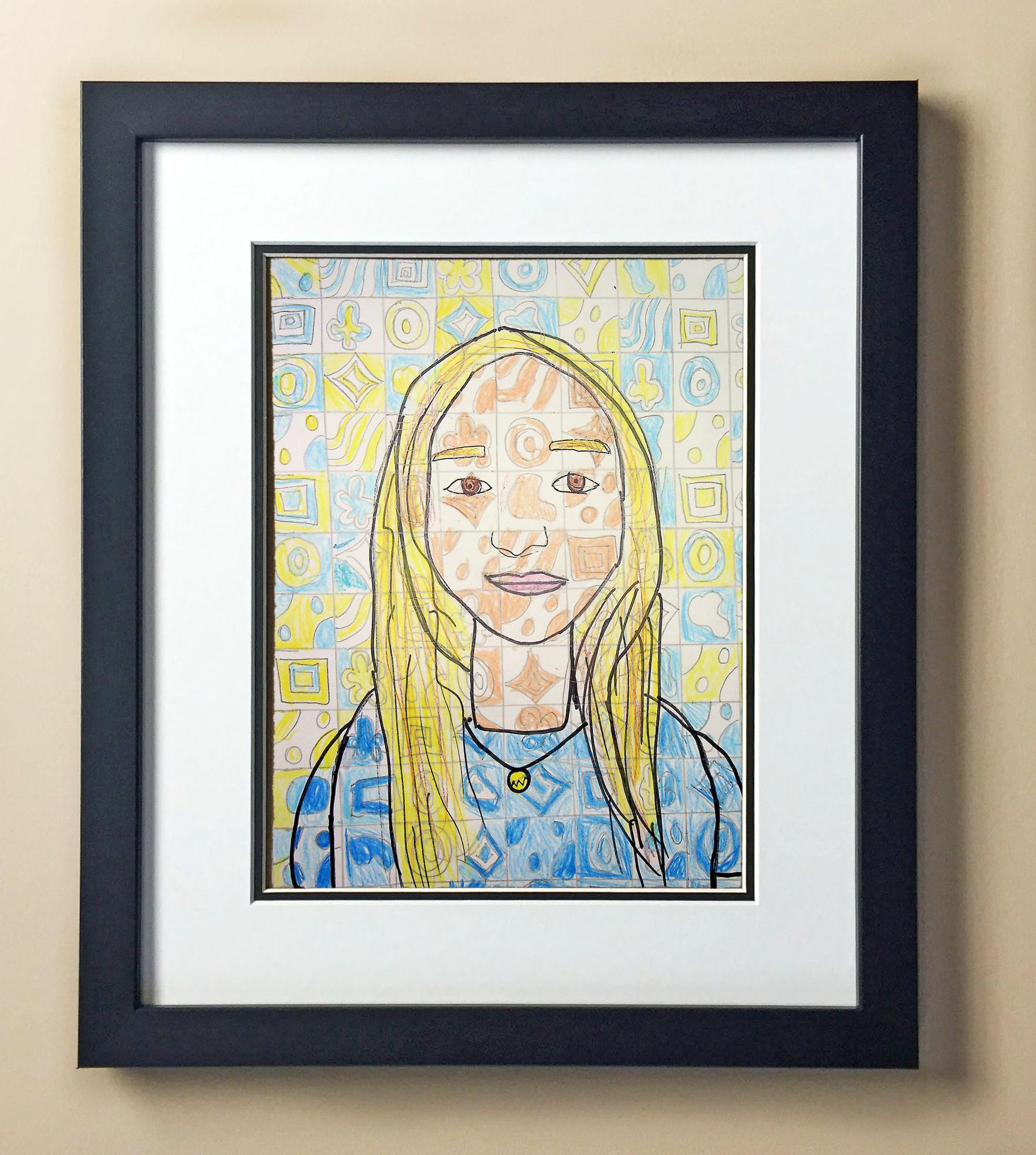 Included with the purchase is the Students Artwork, Frame, double matboard, shatter proof plexiglass, and a ready to hang backerboard with turnbuttons