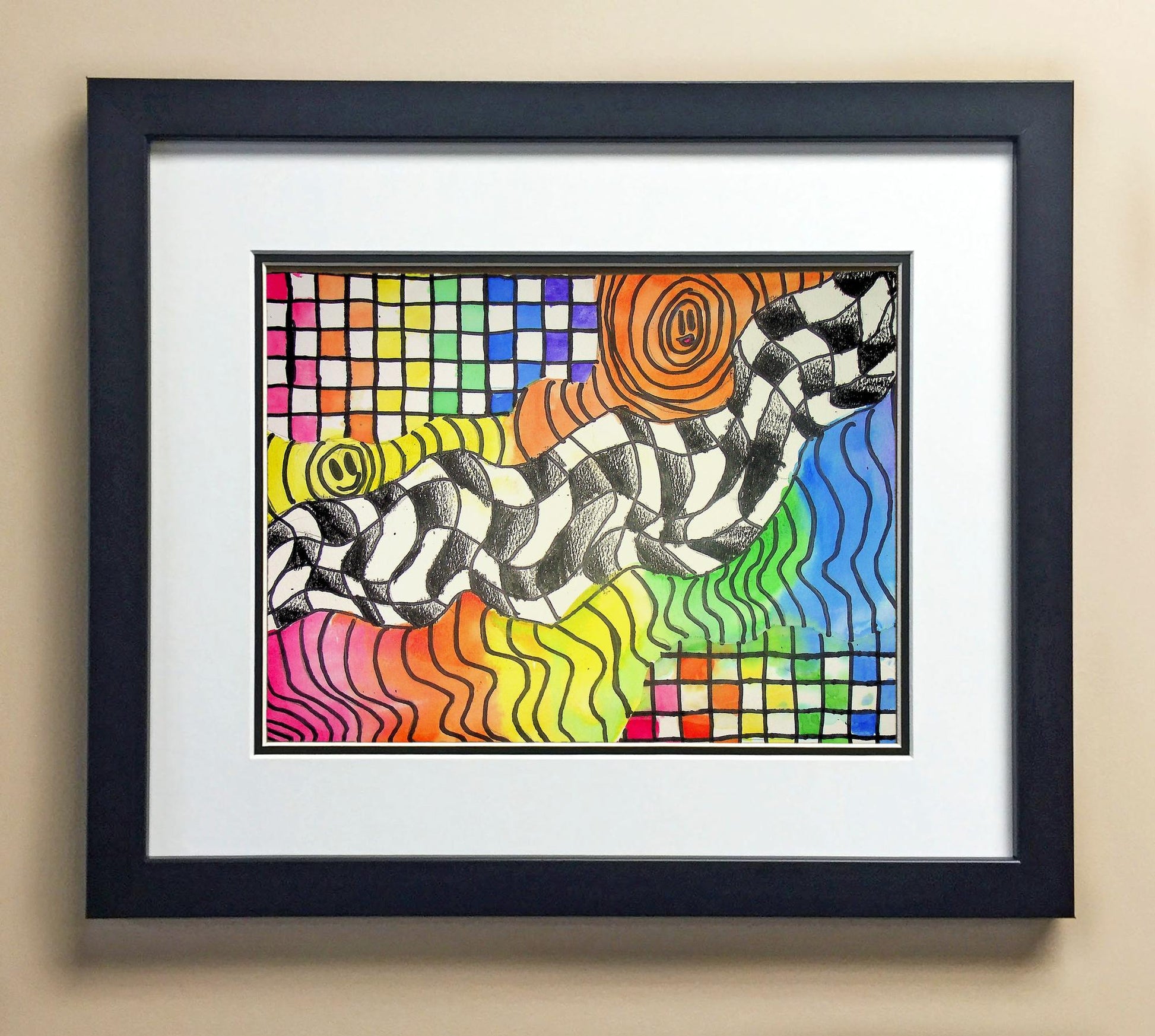 Included with the purchase is the Students Artwork, Frame, double matboard, shatter proof plexiglass, and a ready to hang backerboard with turnbuttons