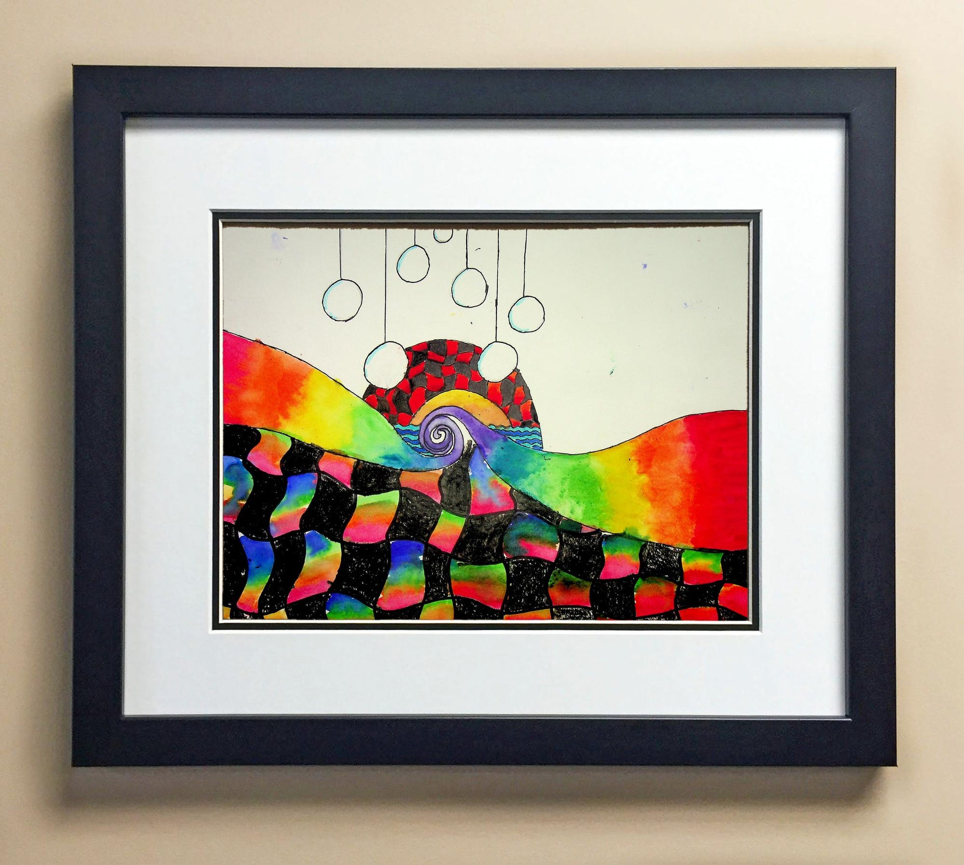 Included with the purchase is the Students Artwork, Frame, double matboard, shatter proof plexiglass, and a ready to hang backerboard with turnbuttons