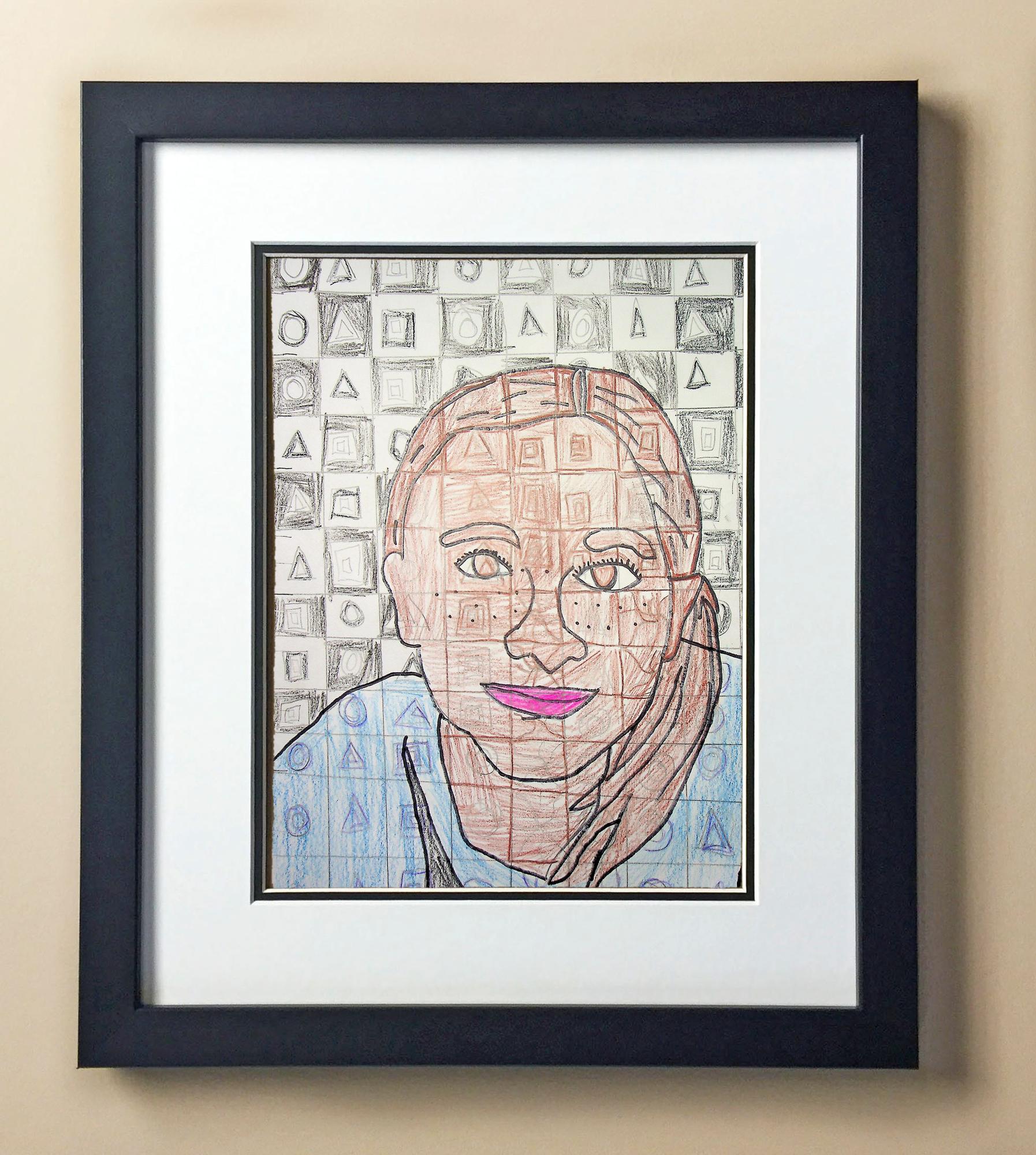Included with the purchase is the Students Artwork, Frame, double matboard, shatter proof plexiglass, and a ready to hang backerboard with turnbuttons