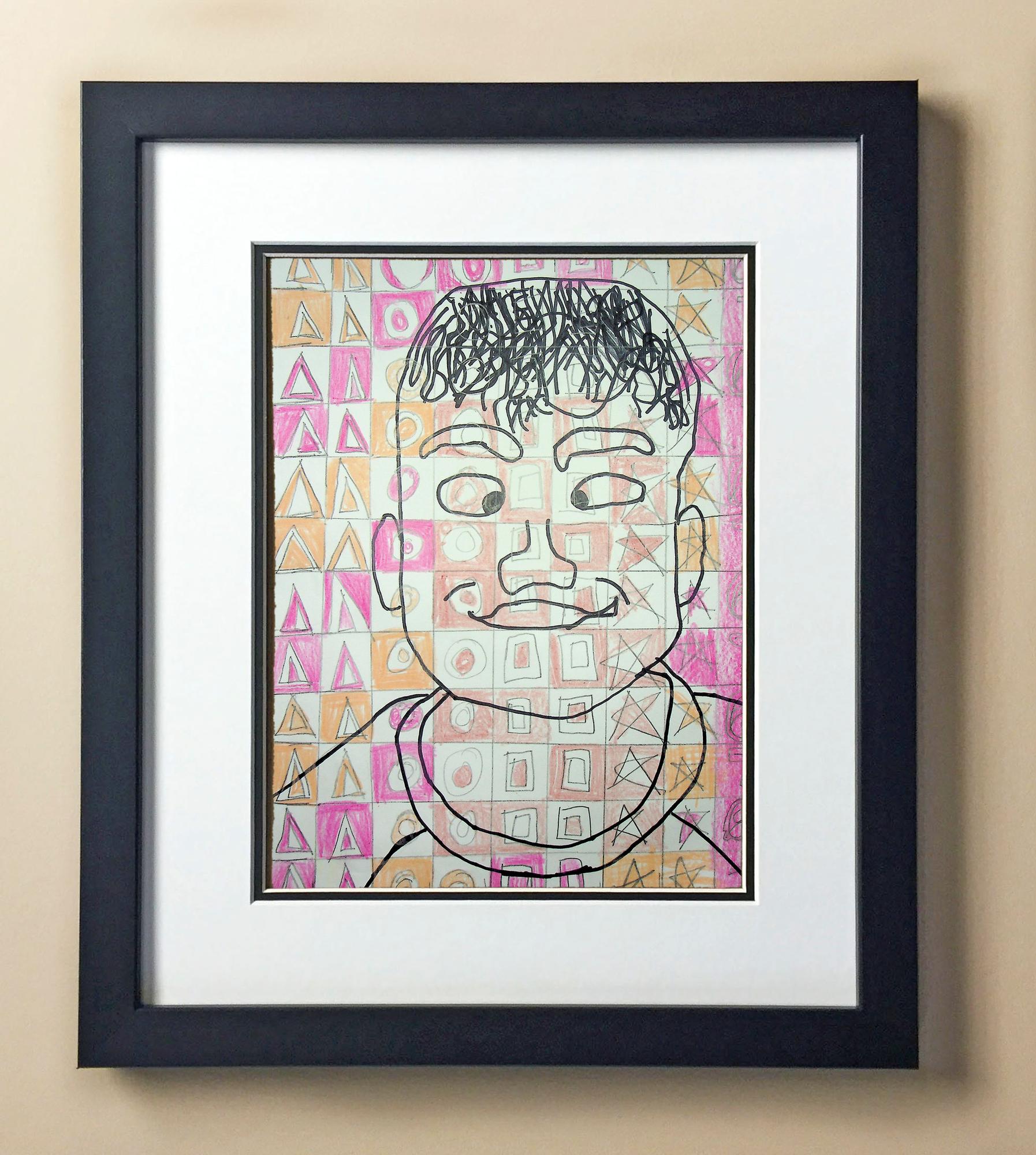 Included with the purchase is the Students Artwork, Frame, double matboard, shatter proof plexiglass, and a ready to hang backerboard with turnbuttons