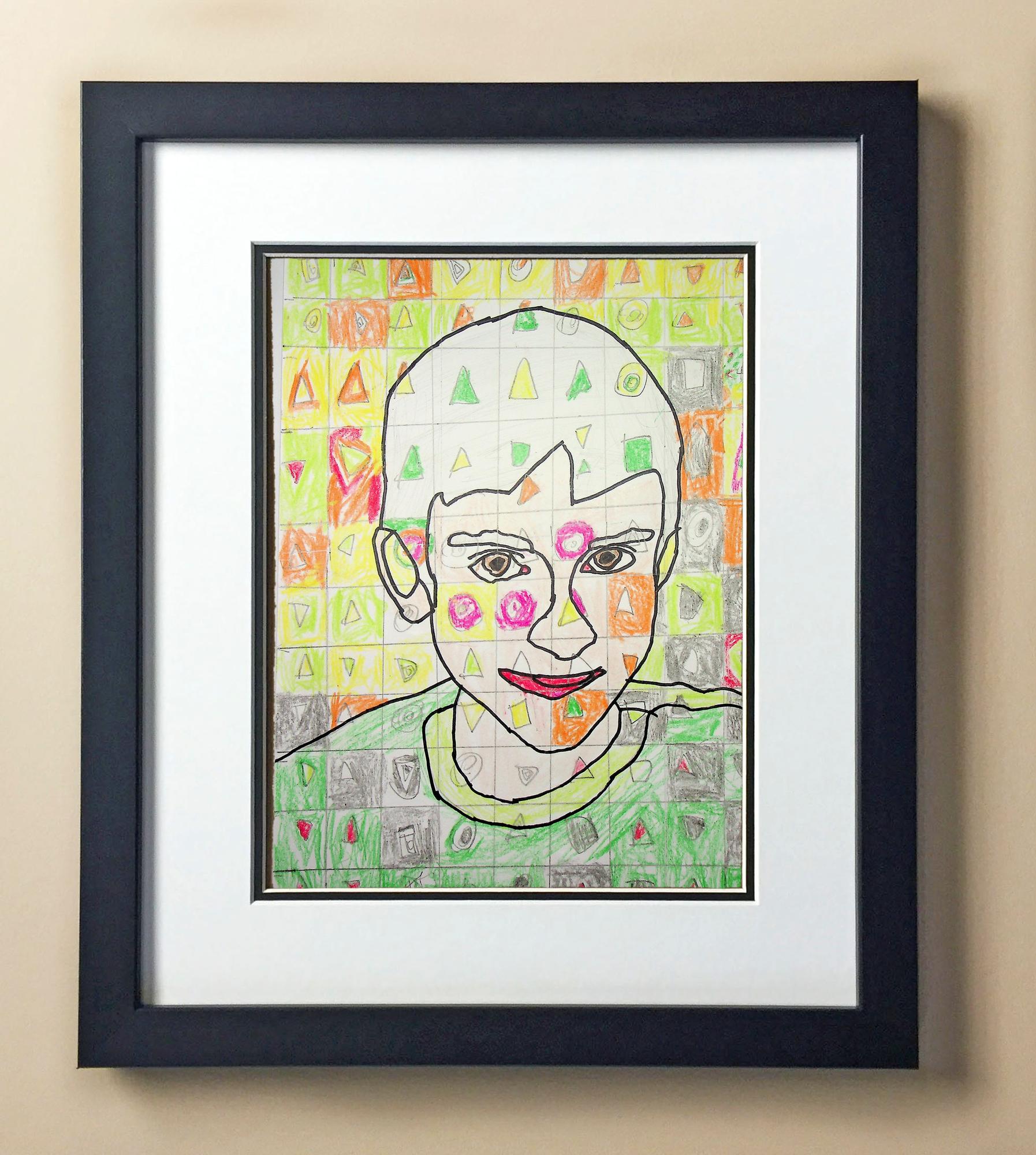 Included with the purchase is the Students Artwork, Frame, double matboard, shatter proof plexiglass, and a ready to hang backerboard with turnbuttons