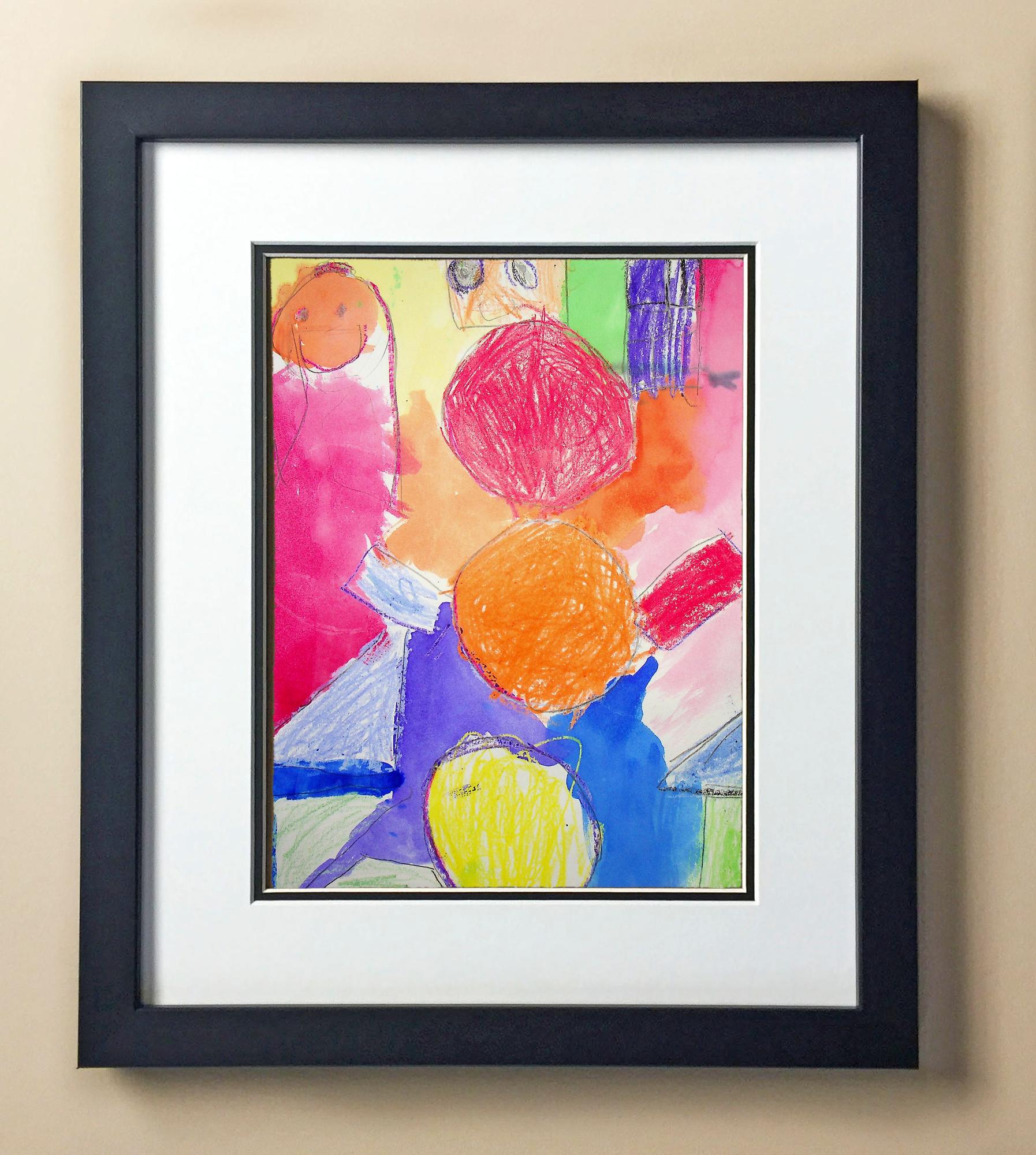 Included with the purchase is the Students Artwork, Frame, double matboard, shatter proof plexiglass, and a ready to hang backerboard with turnbuttons