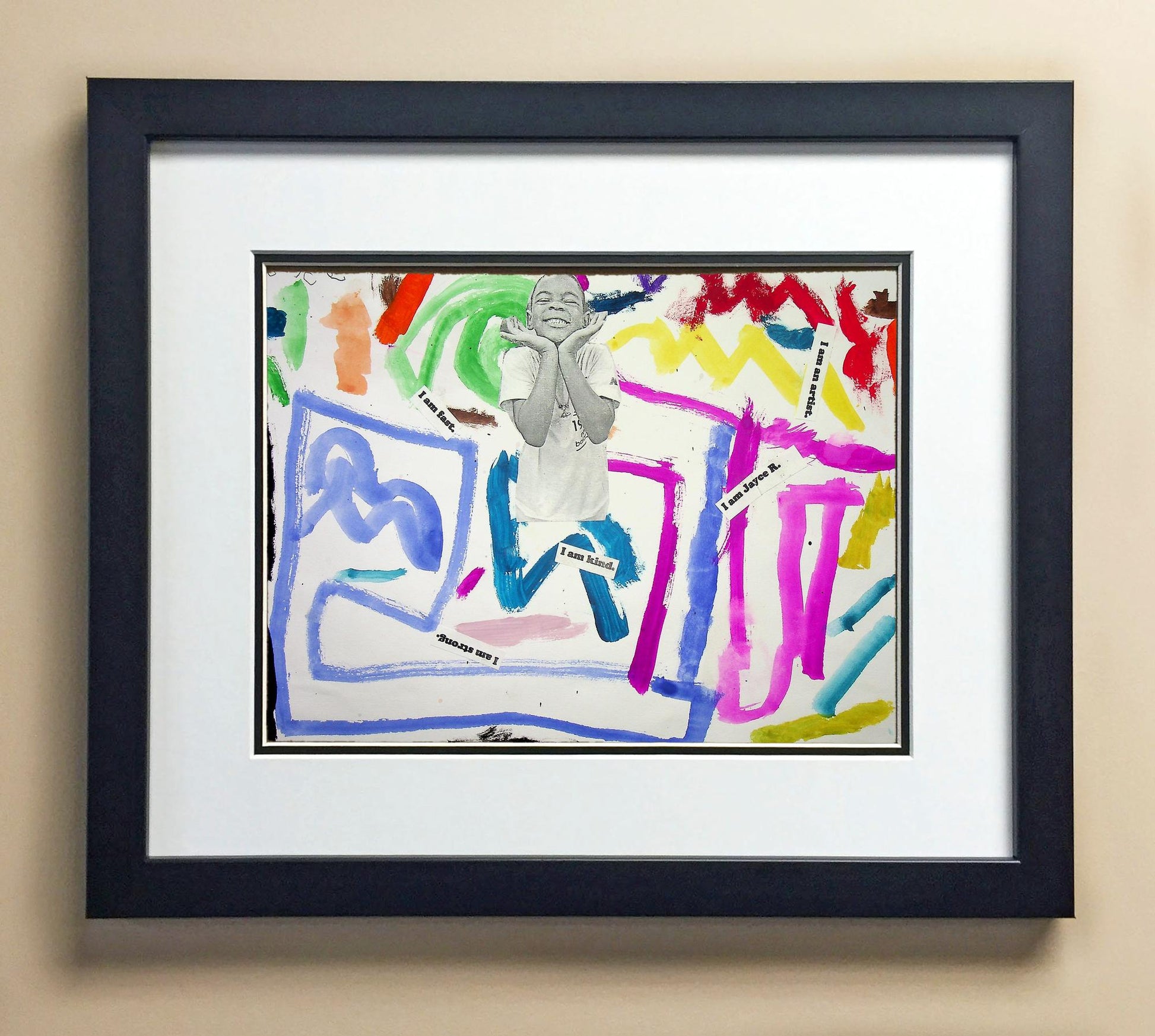 Included with the purchase is the Students Artwork, Frame, double matboard, shatter proof plexiglass, and a ready to hang backerboard with turnbuttons