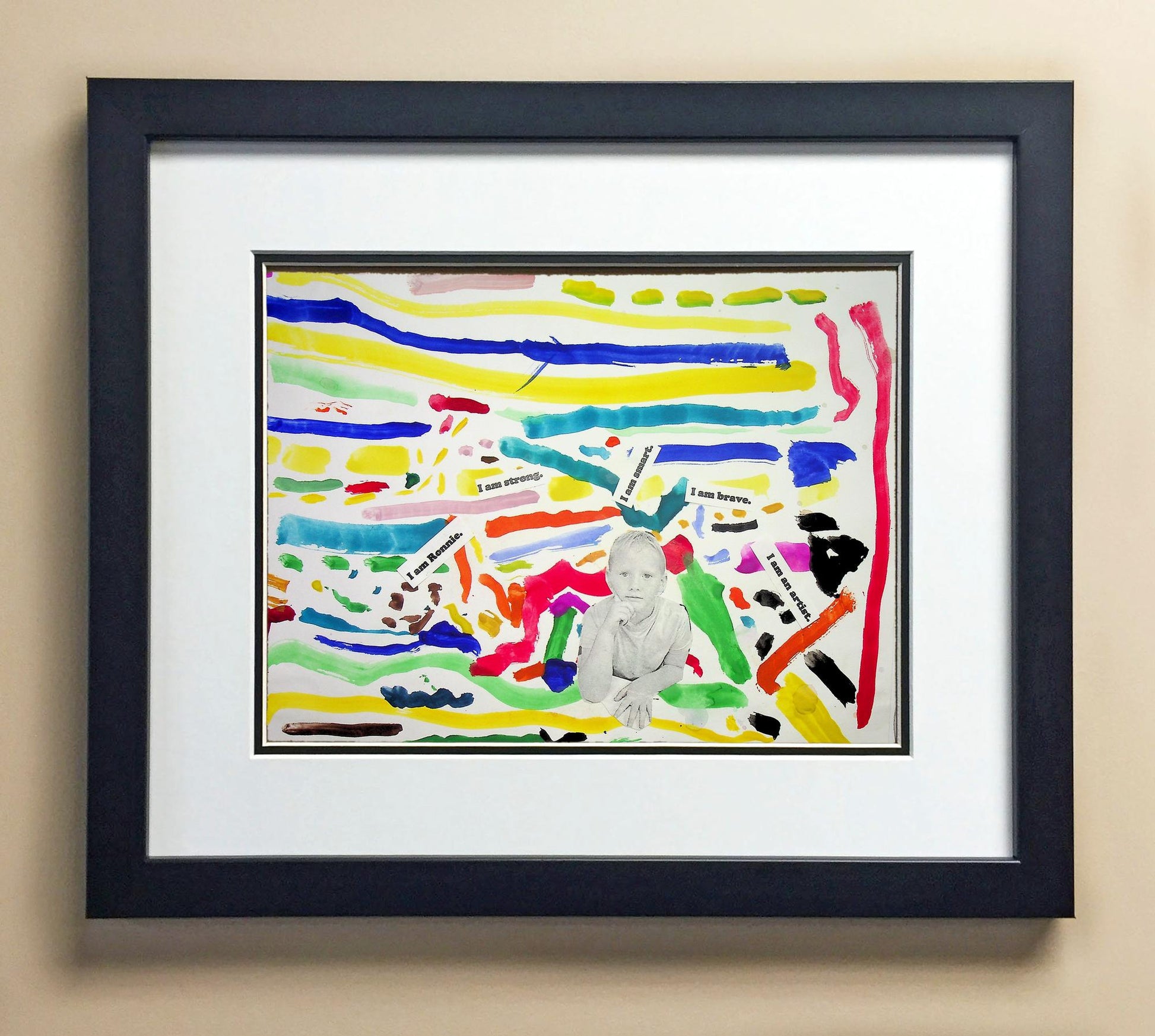 Included with the purchase is the Students Artwork, Frame, double matboard, shatter proof plexiglass, and a ready to hang backerboard with turnbuttons