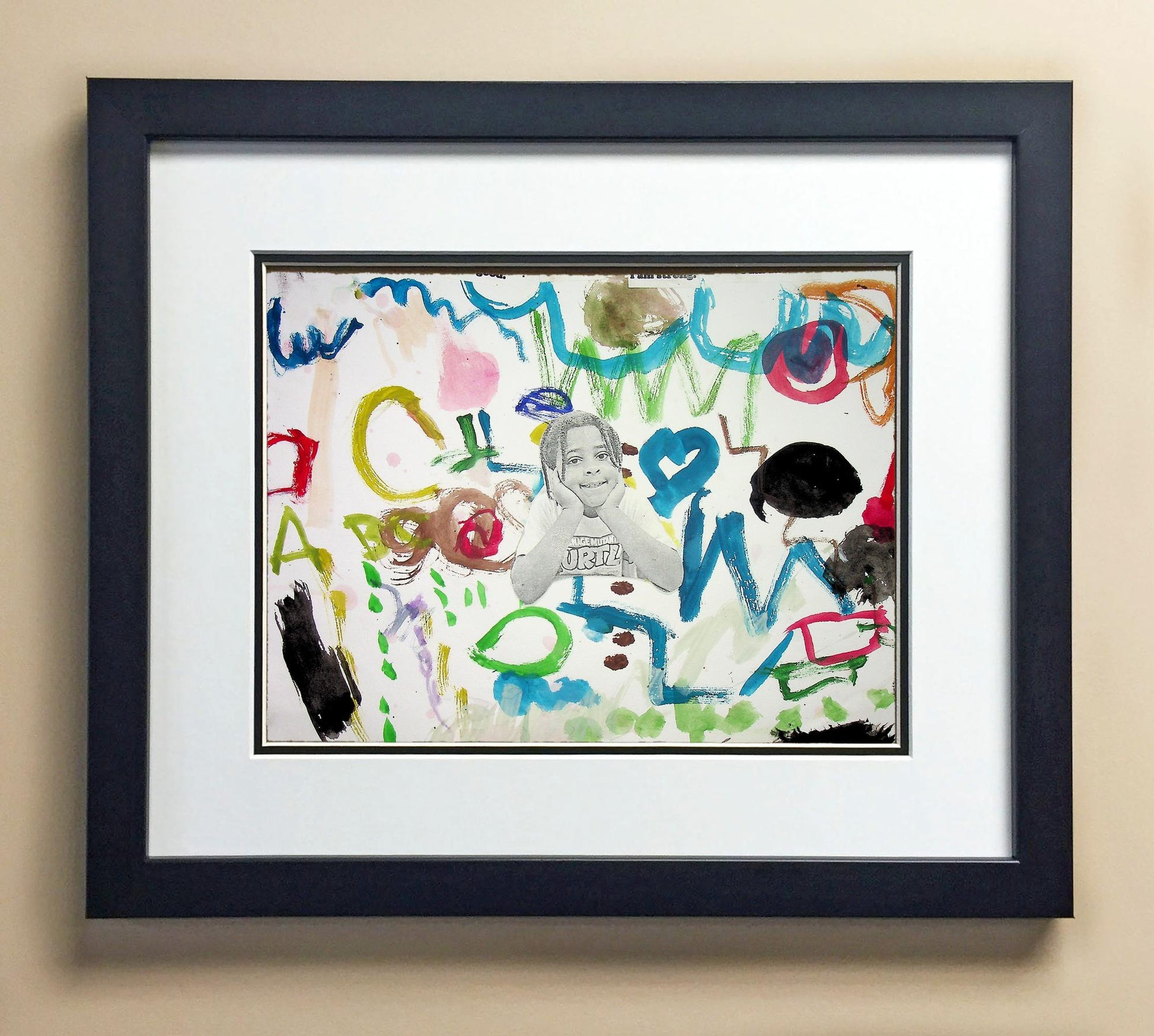 Included with the purchase is the Students Artwork, Frame, double matboard, shatter proof plexiglass, and a ready to hang backerboard with turnbuttons