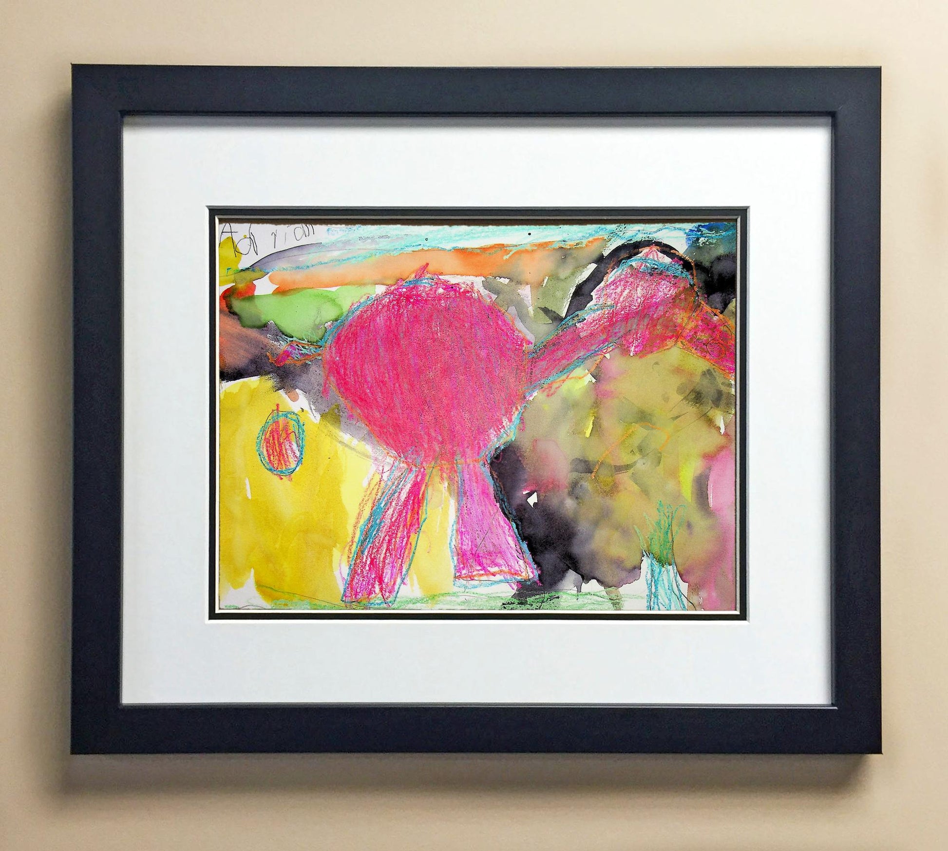 Included with the purchase is the Students Artwork, Frame, double matboard, shatter proof plexiglass, and a ready to hang backerboard with turnbuttons