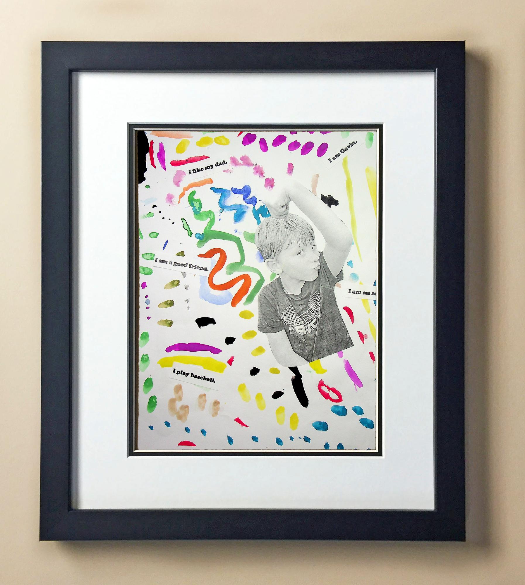 Included with the purchase is the Students Artwork, Frame, double matboard, shatter proof plexiglass, and a ready to hang backerboard with turnbuttons