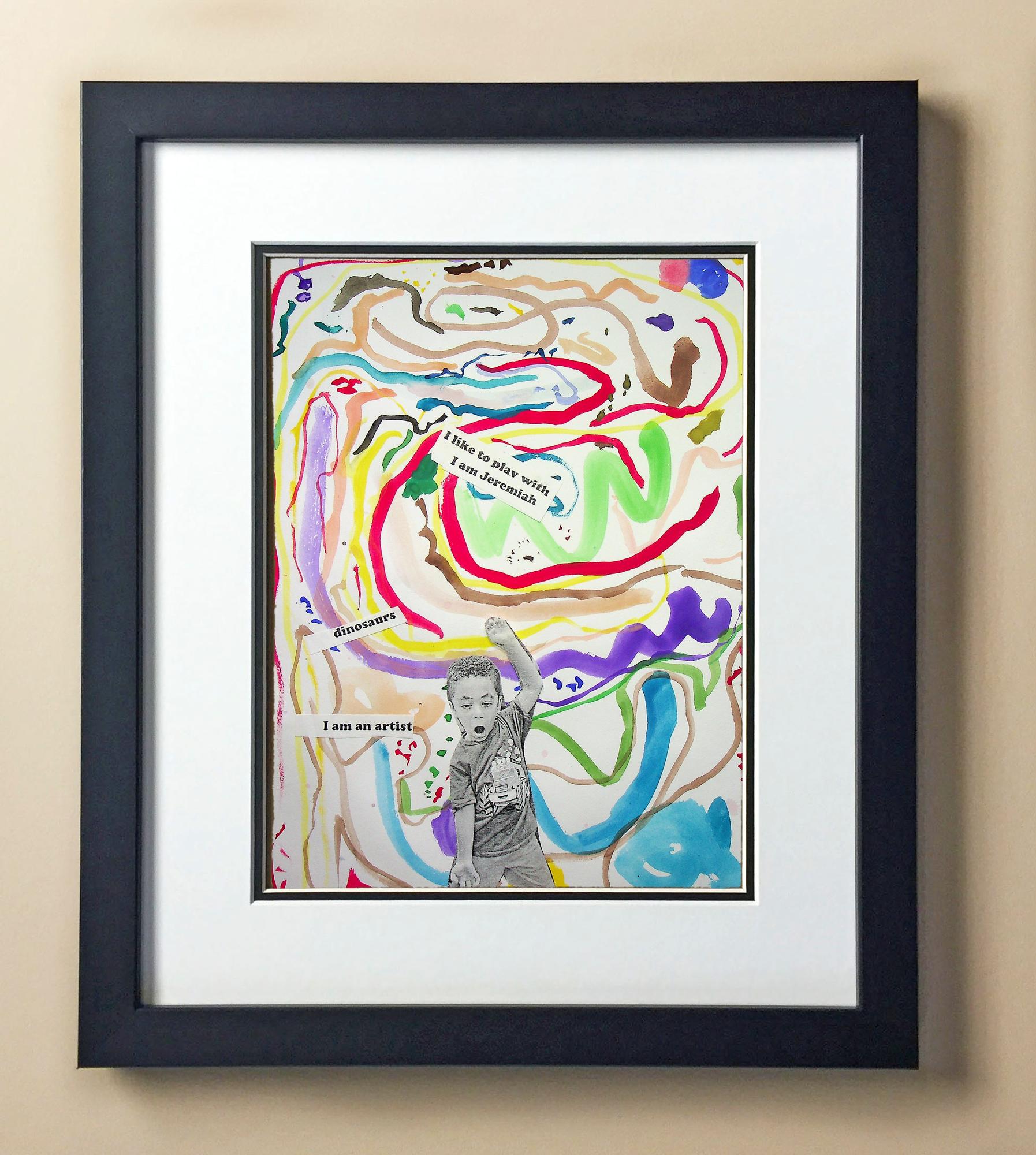 Included with the purchase is the Students Artwork, Frame, double matboard, shatter proof plexiglass, and a ready to hang backerboard with turnbuttons