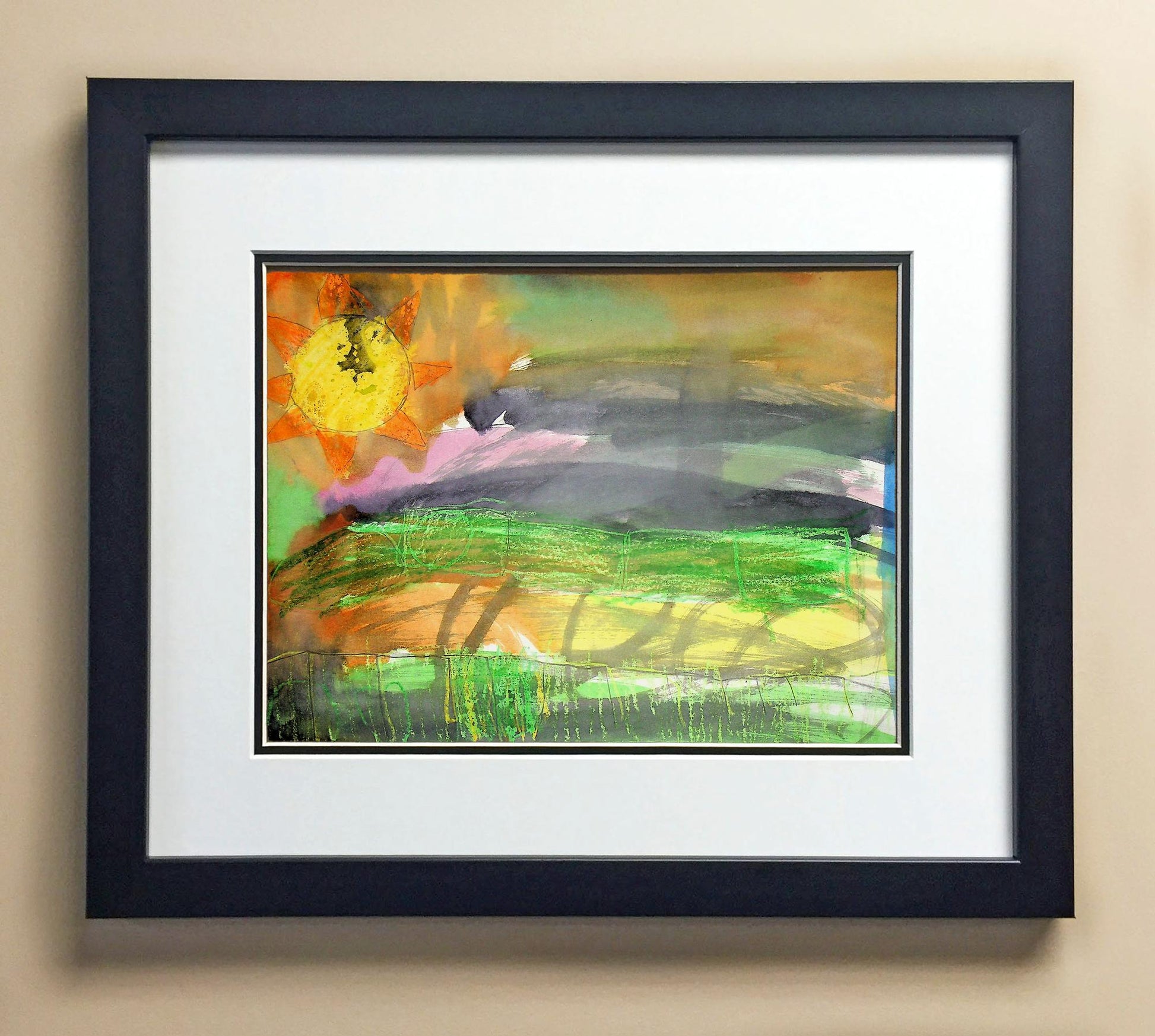 Included with the purchase is the Students Artwork, Frame, double matboard, shatter proof plexiglass, and a ready to hang backerboard with turnbuttons
