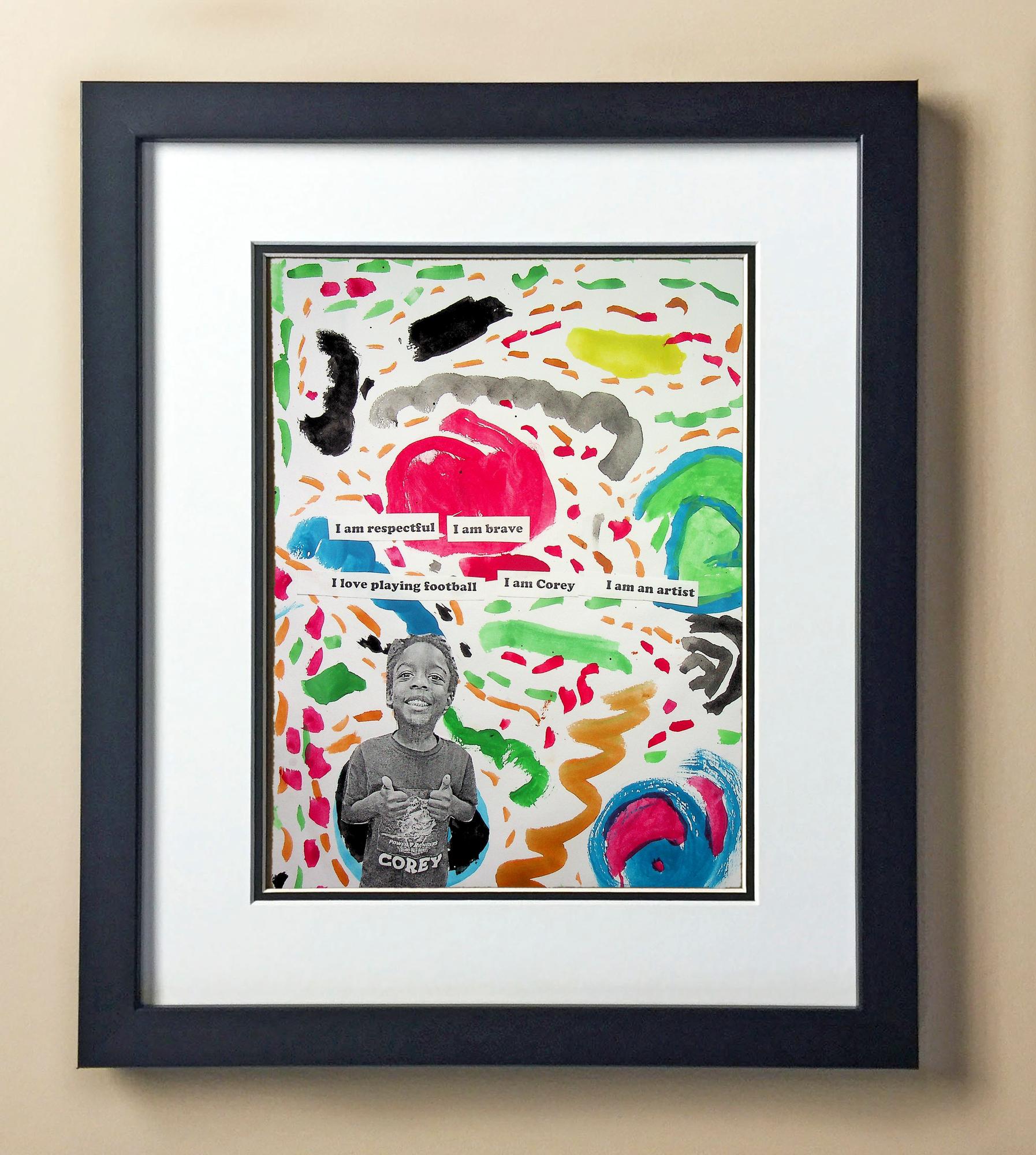 Included with the purchase is the Students Artwork, Frame, double matboard, shatter proof plexiglass, and a ready to hang backerboard with turnbuttons