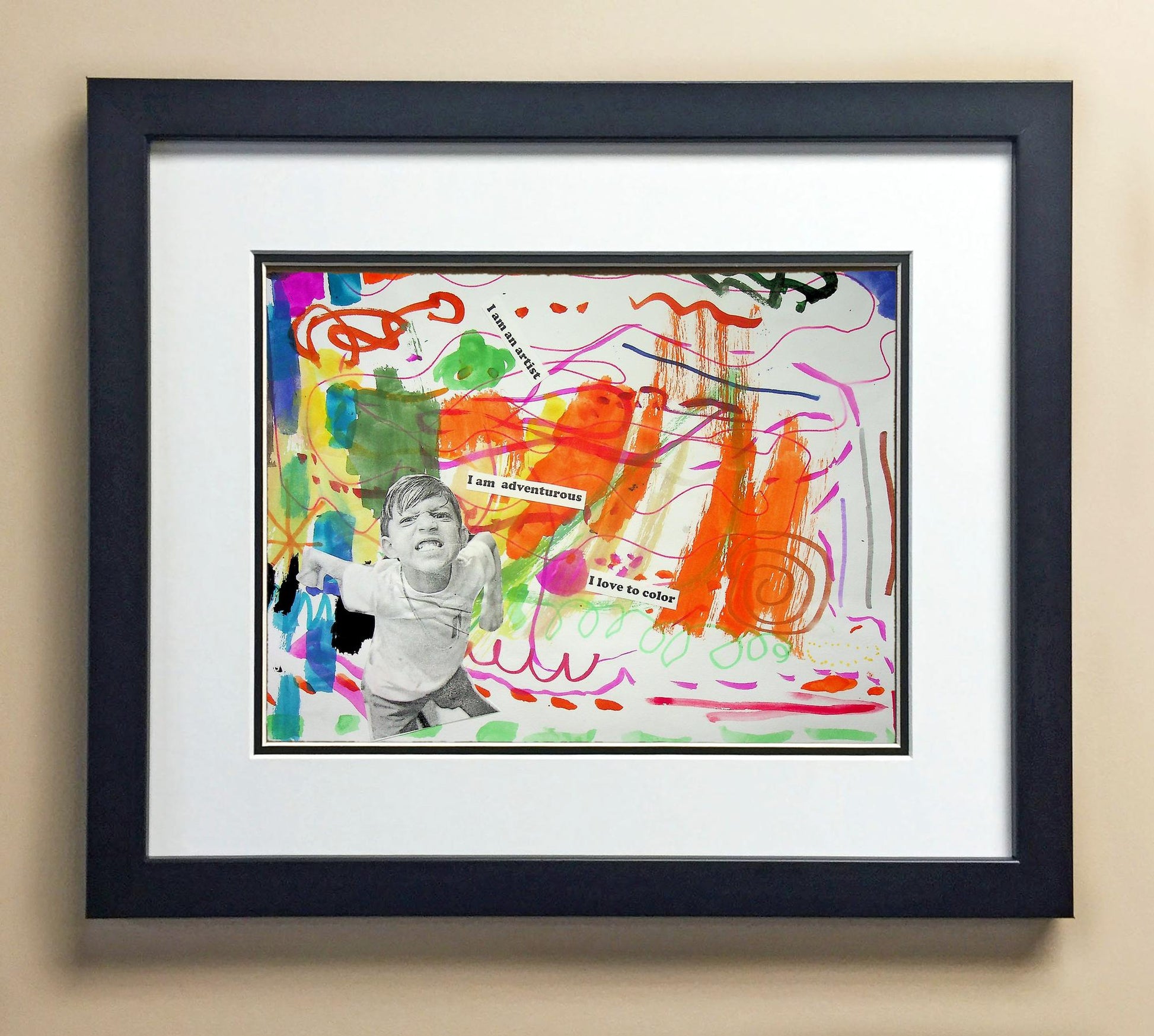 Included with the purchase is the Students Artwork, Frame, double matboard, shatter proof plexiglass, and a ready to hang backerboard with turnbuttons