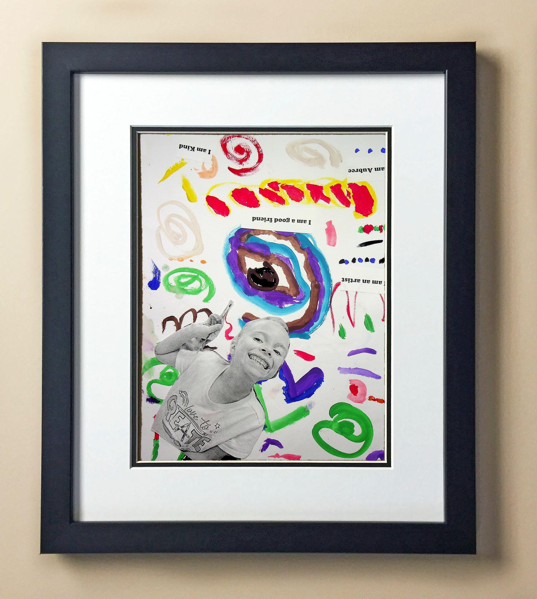 Included with the purchase is the Students Artwork, Frame, double matboard, shatter proof plexiglass, and a ready to hang backerboard with turnbuttons