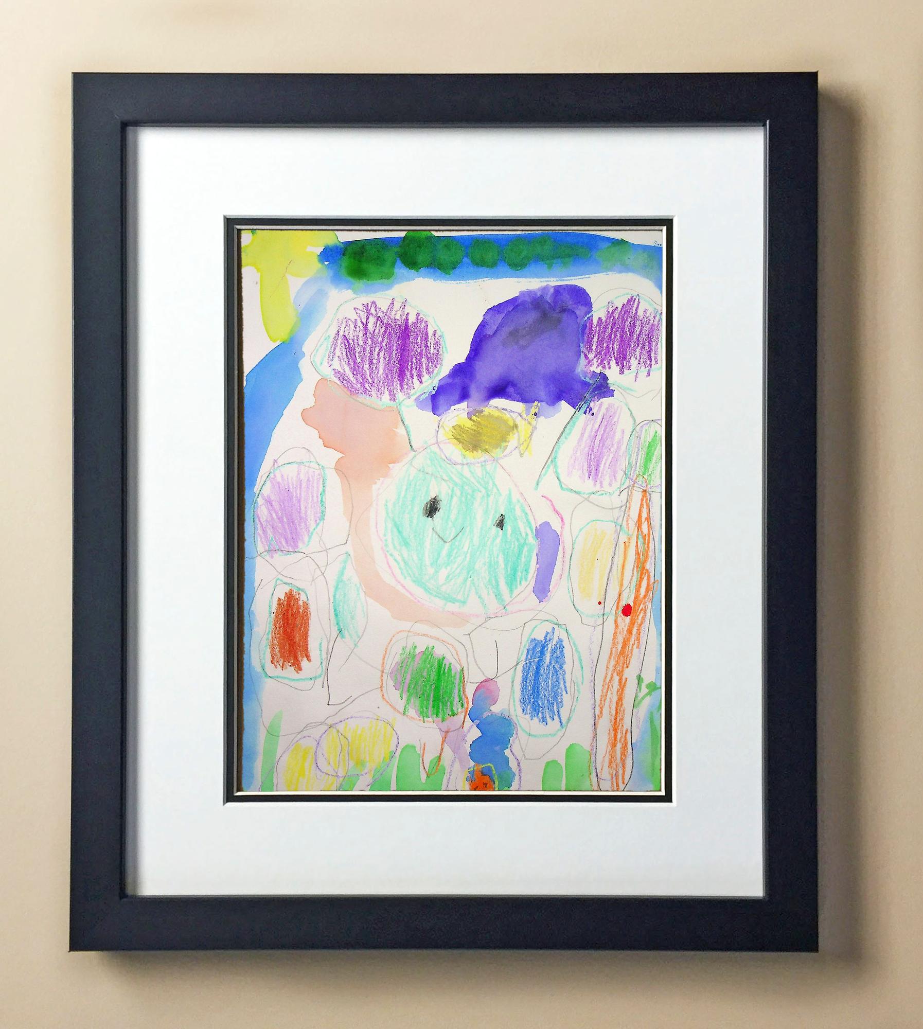 Included with the purchase is the Students Artwork, Frame, double matboard, shatter proof plexiglass, and a ready to hang backerboard with turnbuttons