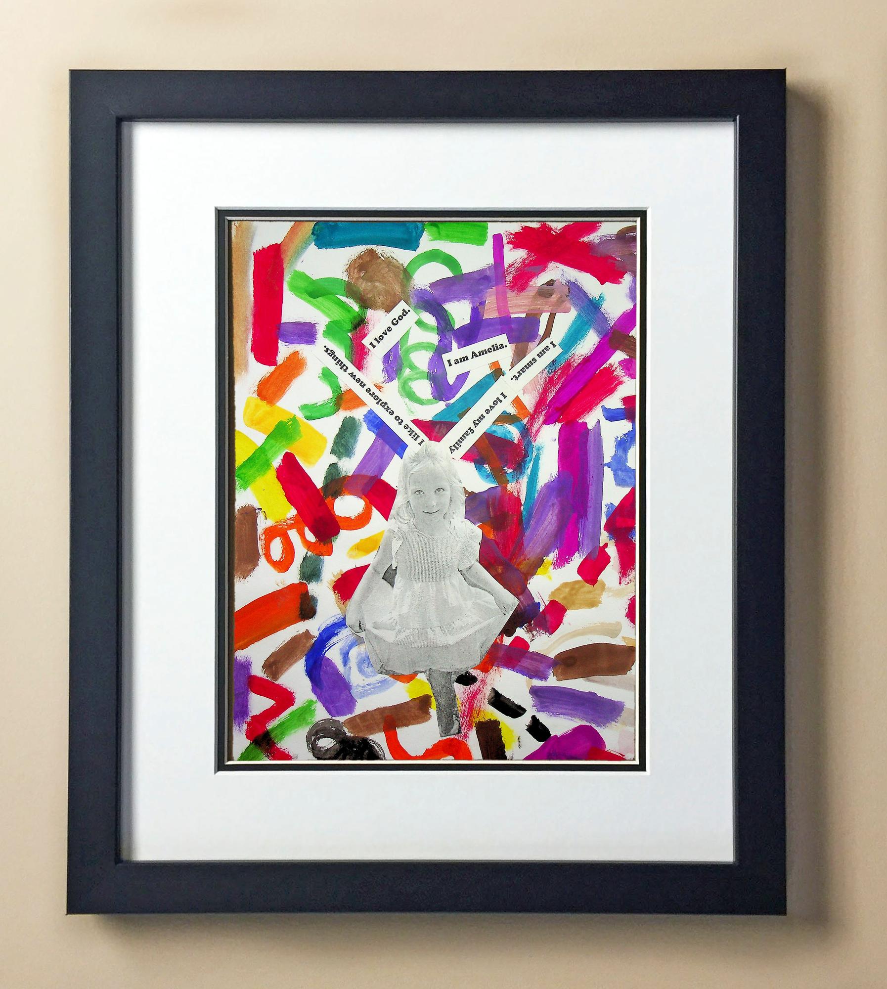 Included with the purchase is the Students Artwork, Frame, double matboard, shatter proof plexiglass, and a ready to hang backerboard with turnbuttons